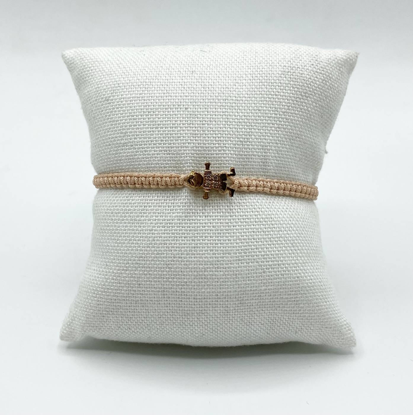 Bracciale donna Fatto a mano con cordino per regolazione, elementi in argento 925 bagnato oro rosa e zirconi.