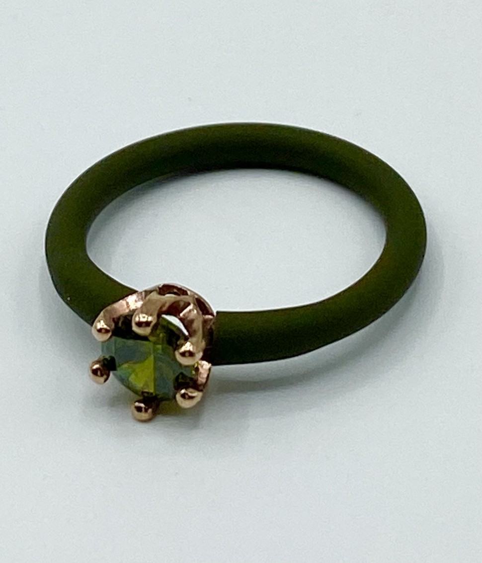 Anello donna Fatto a mano solitario tondo piccolo silicone e argento