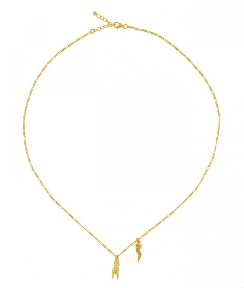 Collana donna, lunga 48 cm, Rue Des Mille. In argento 925 bagnato oro giallo 18 Kt e zirconi.