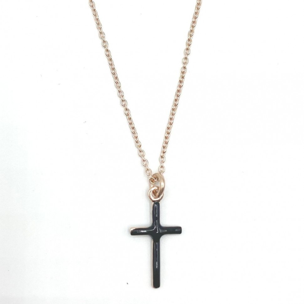 Collana donna, lunga 43 cm, Rue Des Mille. In argento 925 bagnato oro rosa 18 Kt e pendente smaltato.