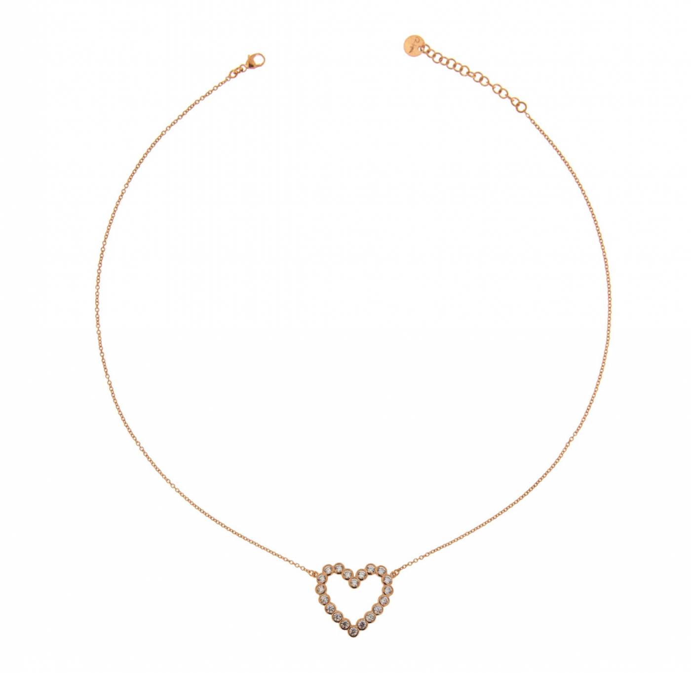 Collana donna, lunga 44 cm, Rue Des Mille. In argento 925 bagnato oro rosa 18 Kt e zirconi.