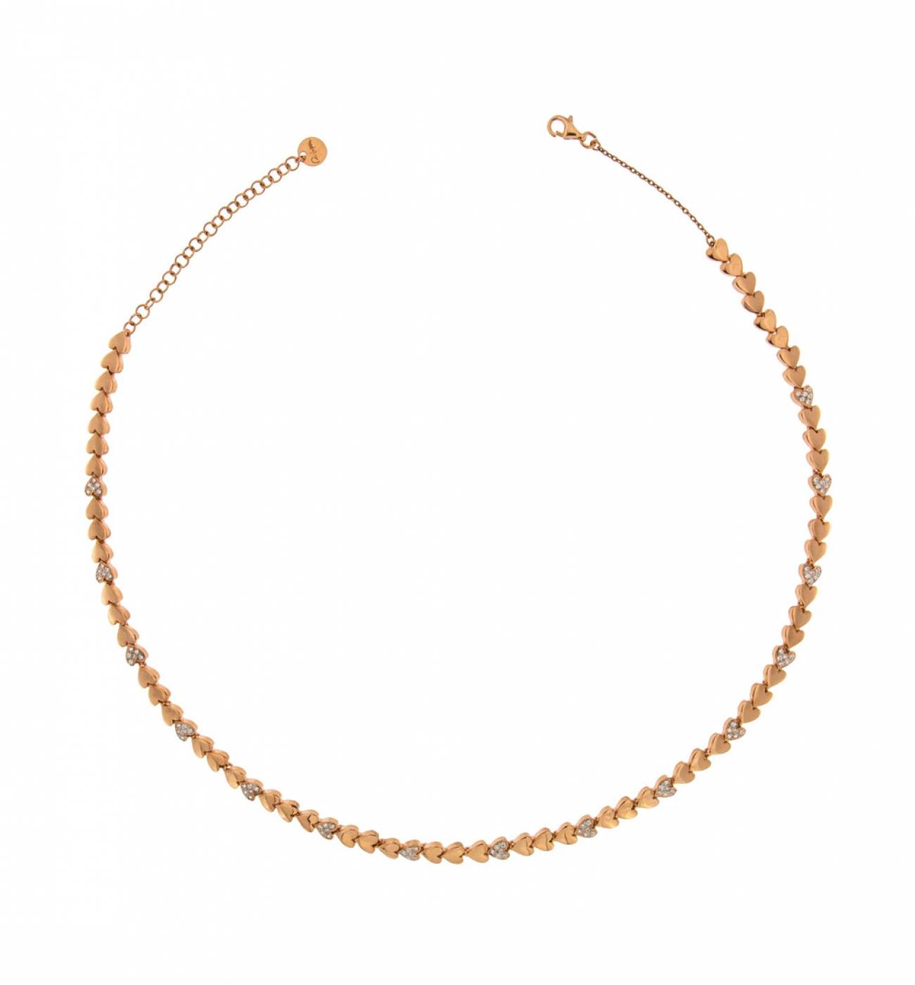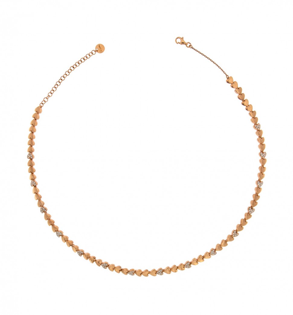 Collana donna, lunga 42 cm, Rue Des Mille. In argento 925 bagnato oro rosa 18 Kt e zirconi.