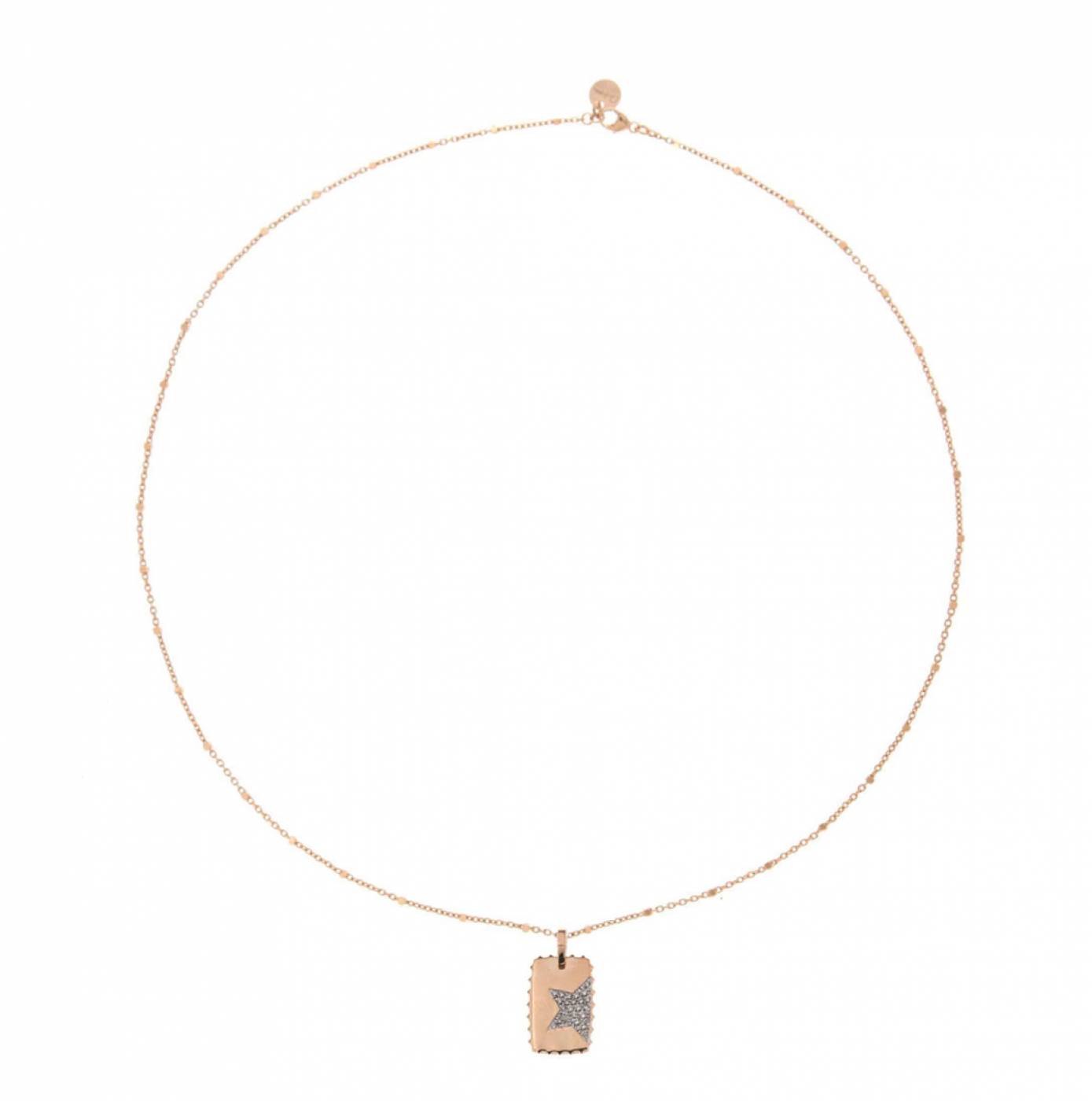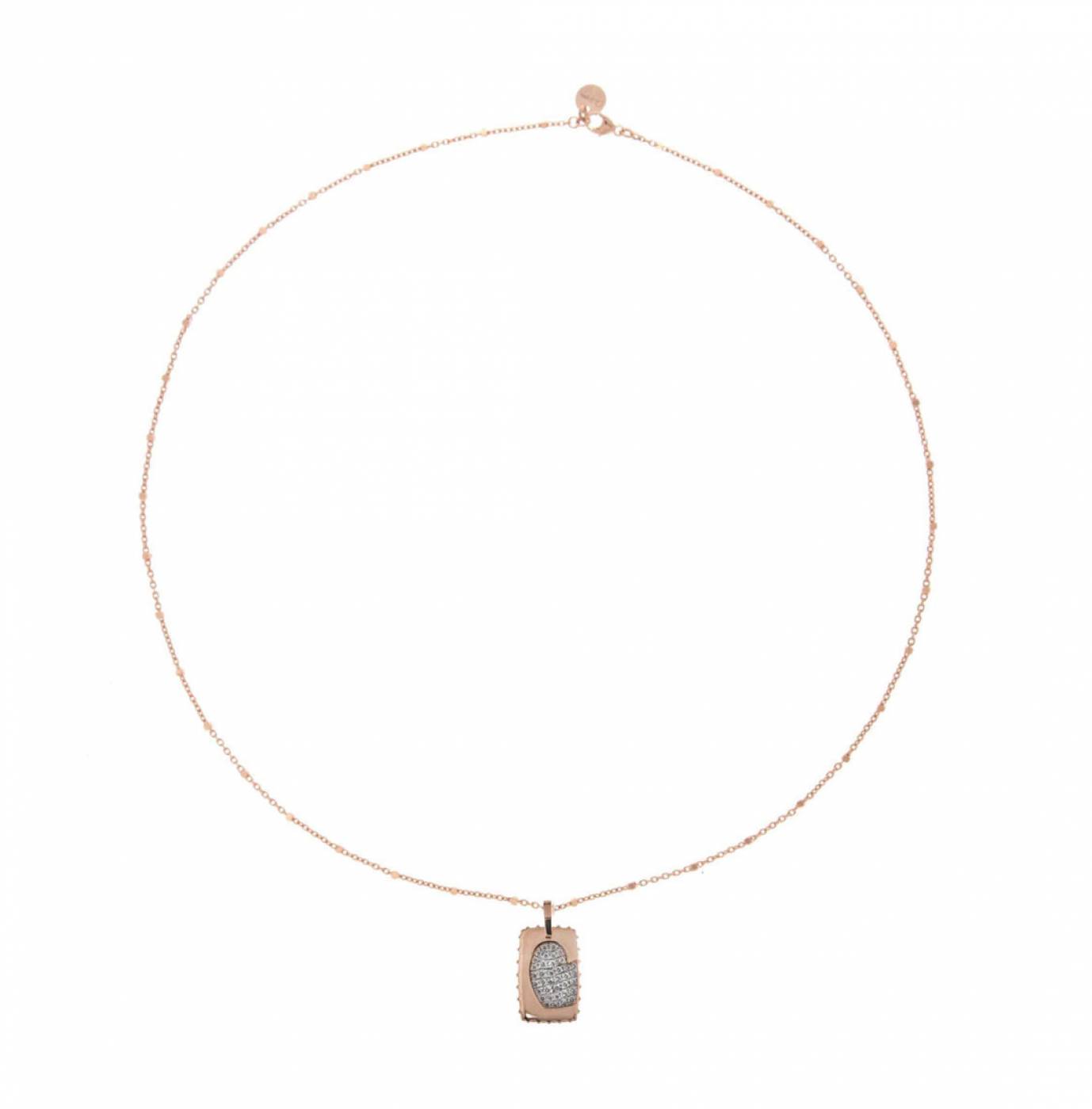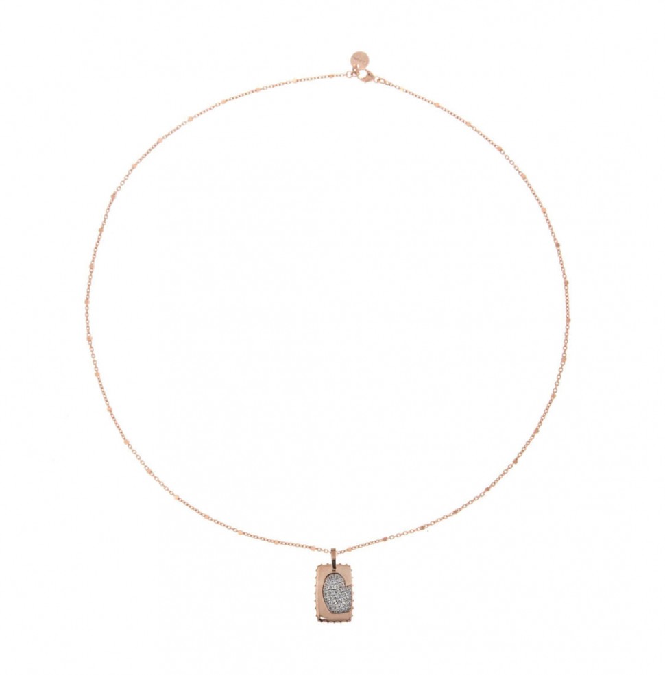 Collana donna, lunga 42 cm, Rue Des Mille. In argento 925 bagnato oro rosa 18 Kt e zirconi.