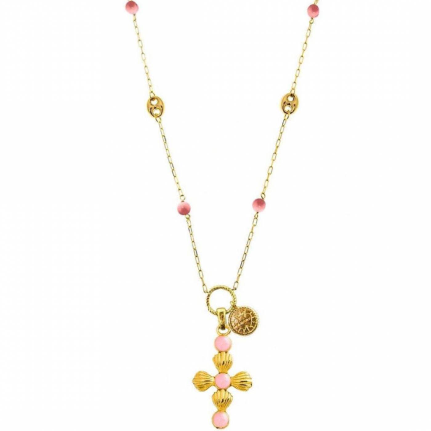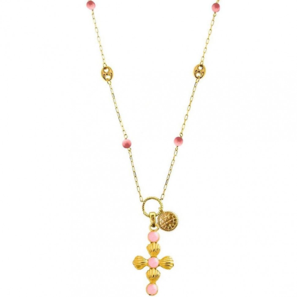 Collana donna, lunga 55 cm, Rue Des Mille. In argento 925 bagnato oro giallo 18 Kt e smalto.