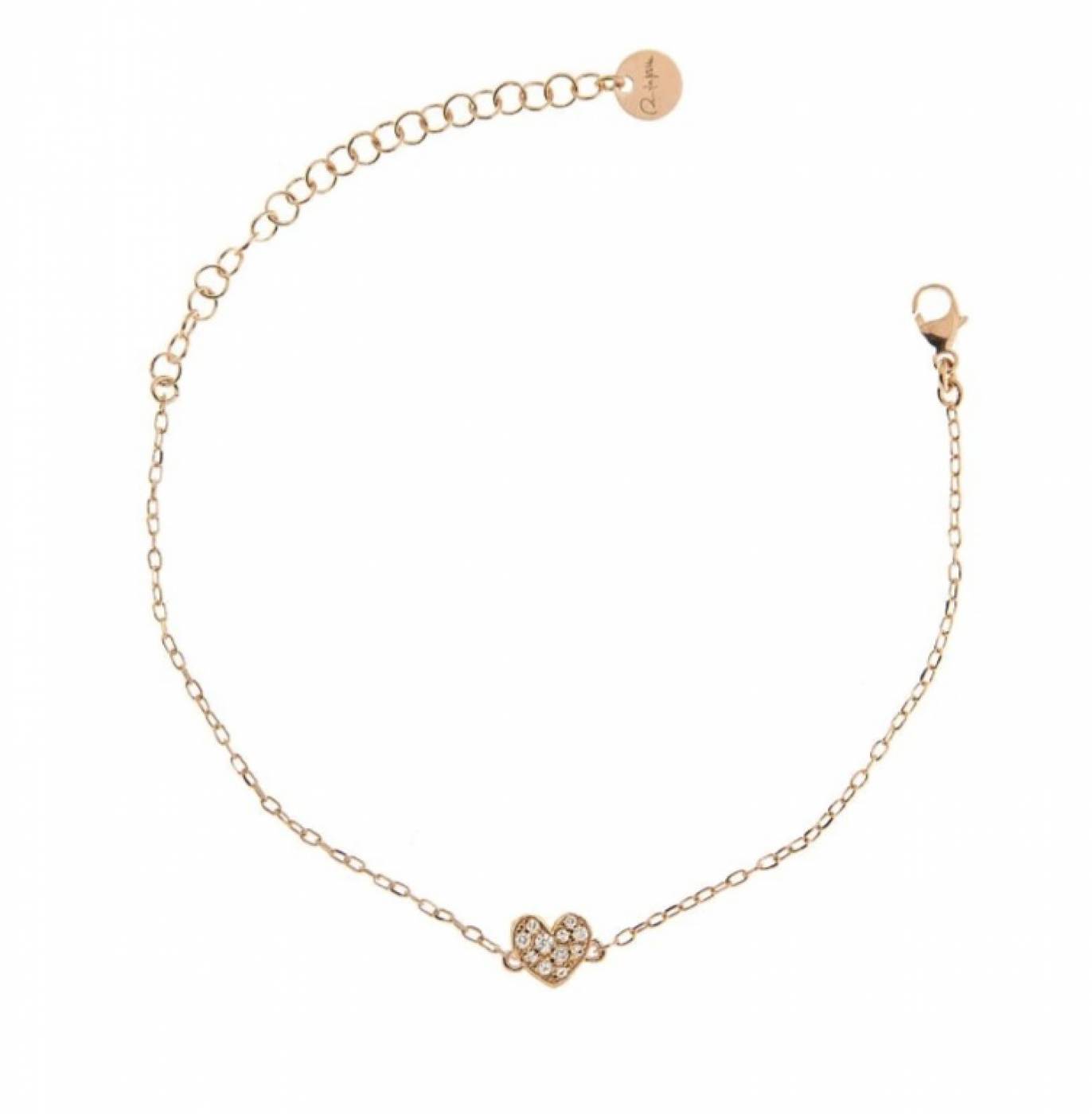 Bracciale donna, lungo 19 cm, Rue Des Mille. In argento 925 bagnato oro rosa e zirconi.