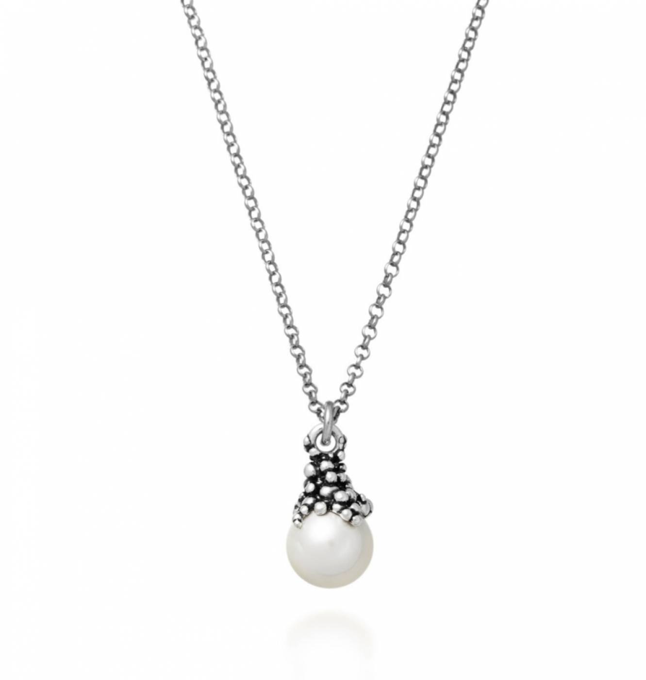 Argento 925 e perla naturale Lunghezza catena 45 cm Lunghezza pendente 2 cm Chiusura con moschettone Fatto a mano in Italia SKU:11106