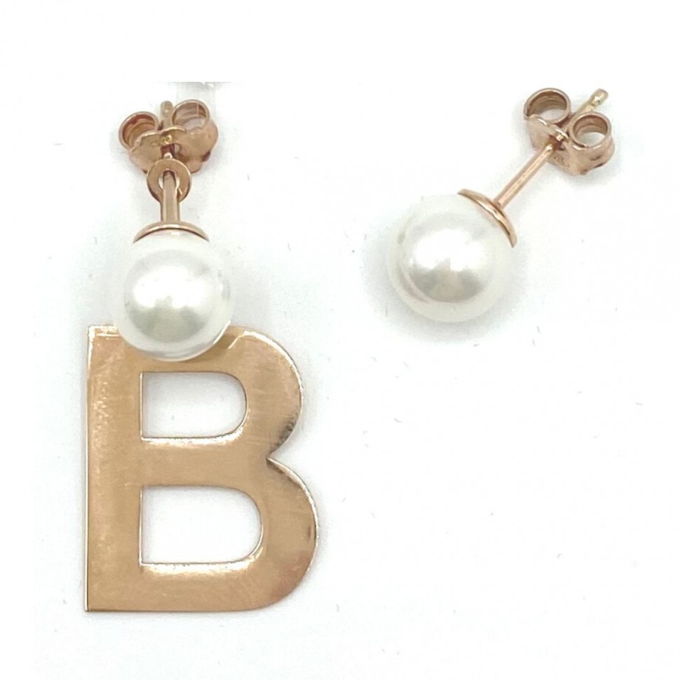 Mono orecchino donna Rue Des Mille in argento 925 bagnato oro rosa 18 kt e perla sintetica.