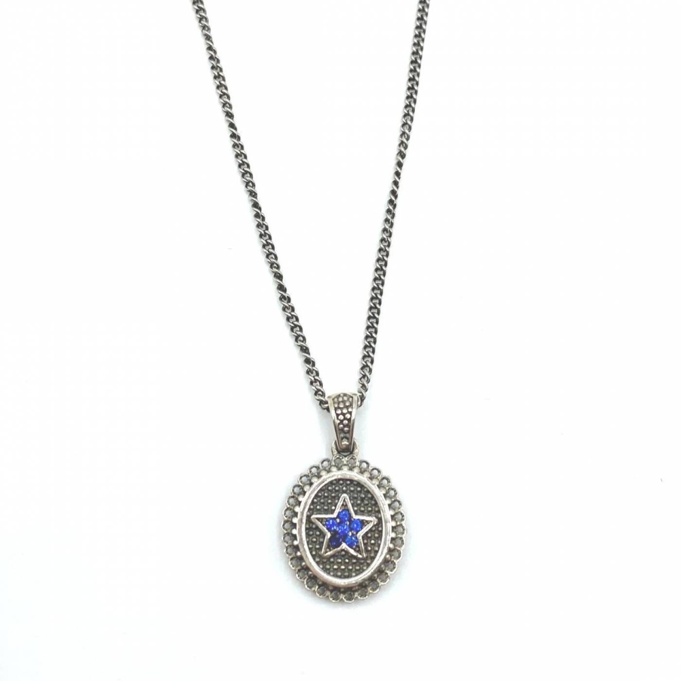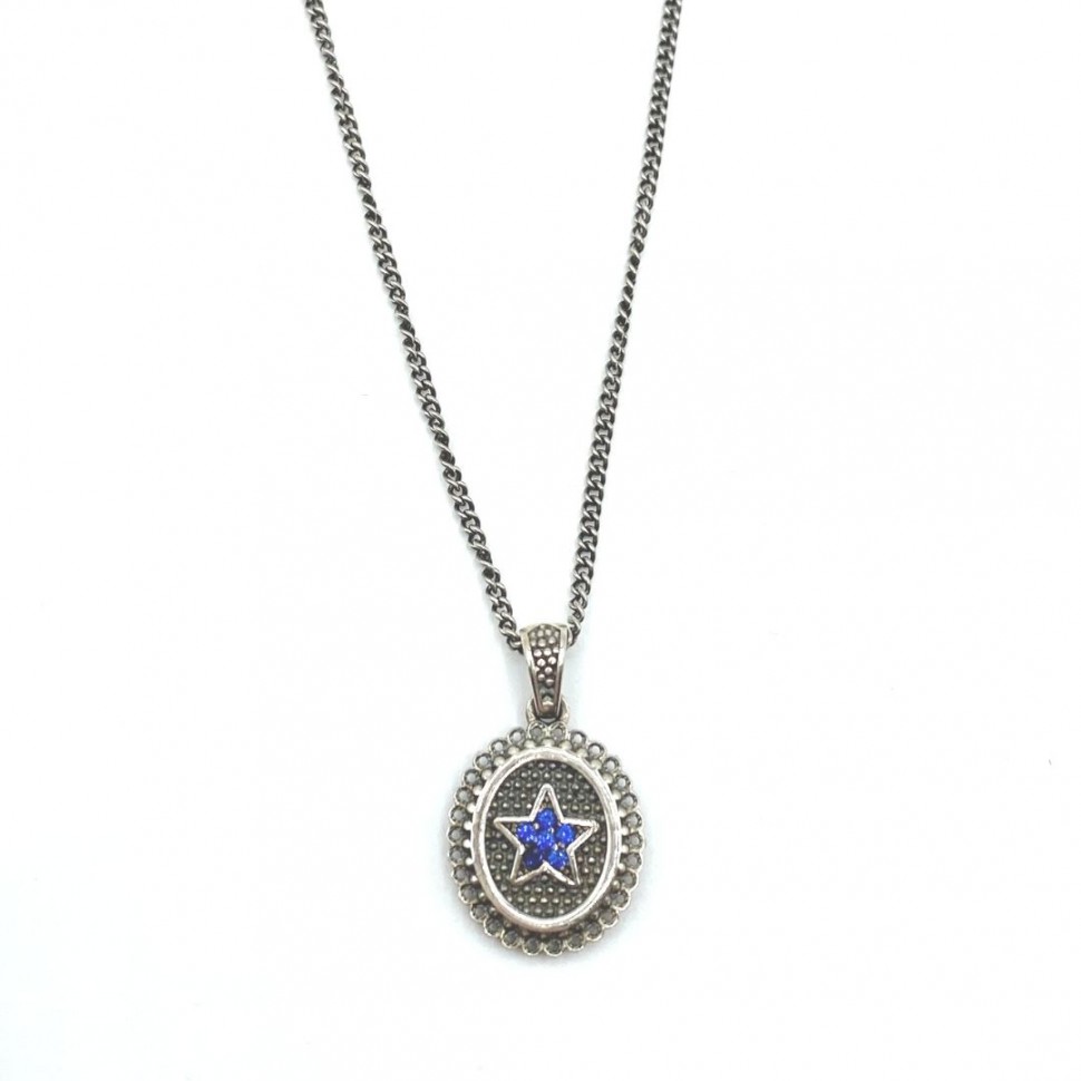 Collana donna, lunga 50 cm, Rue Des Mille in argento 925 brunito e zirconi colorati.