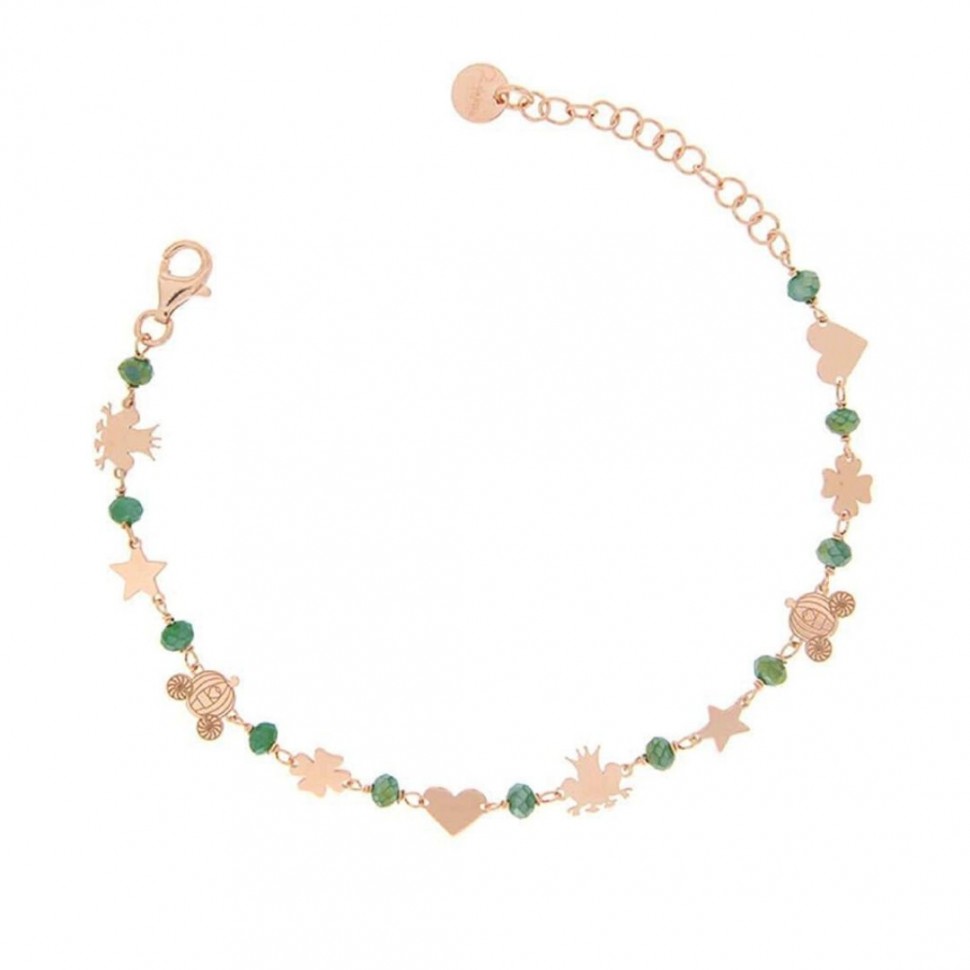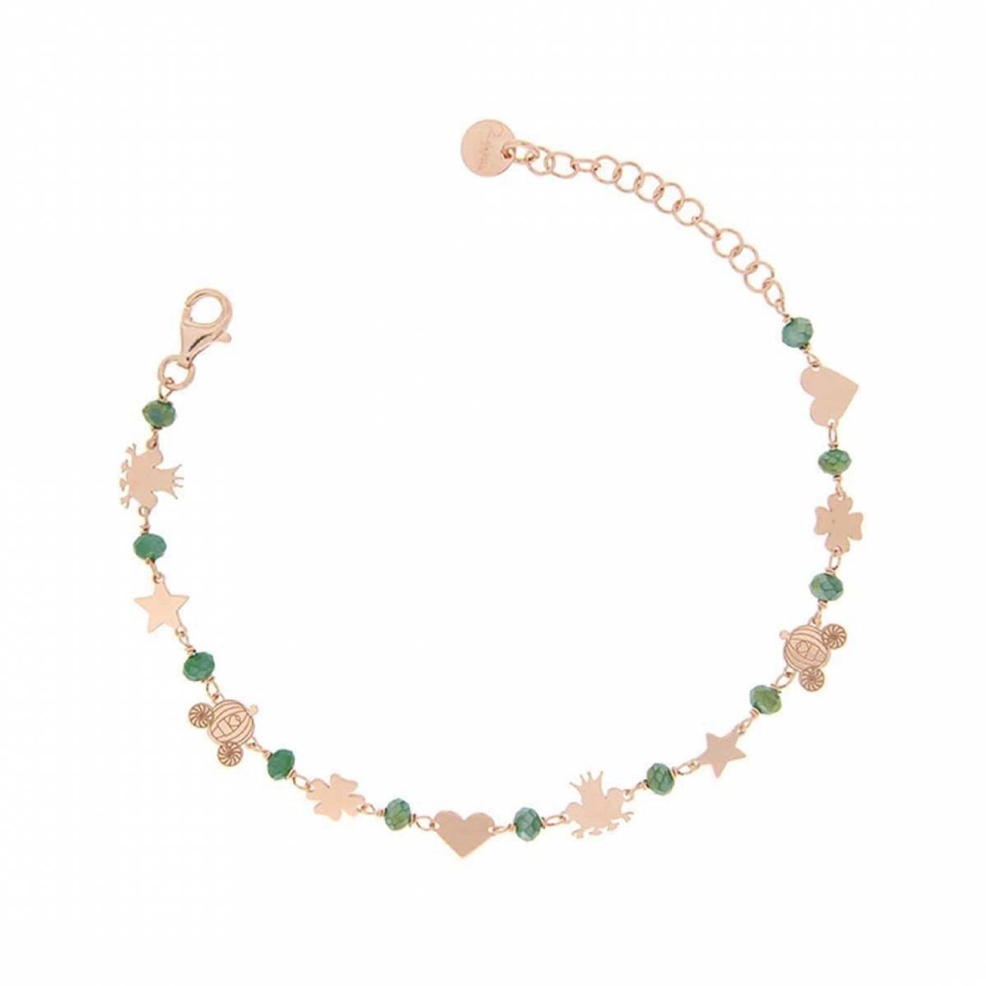 Bracciale donna, lungo 20 cm, Rue Des Mille in argento 925 bagnato oro rosa 18 kt e pietre verdi.