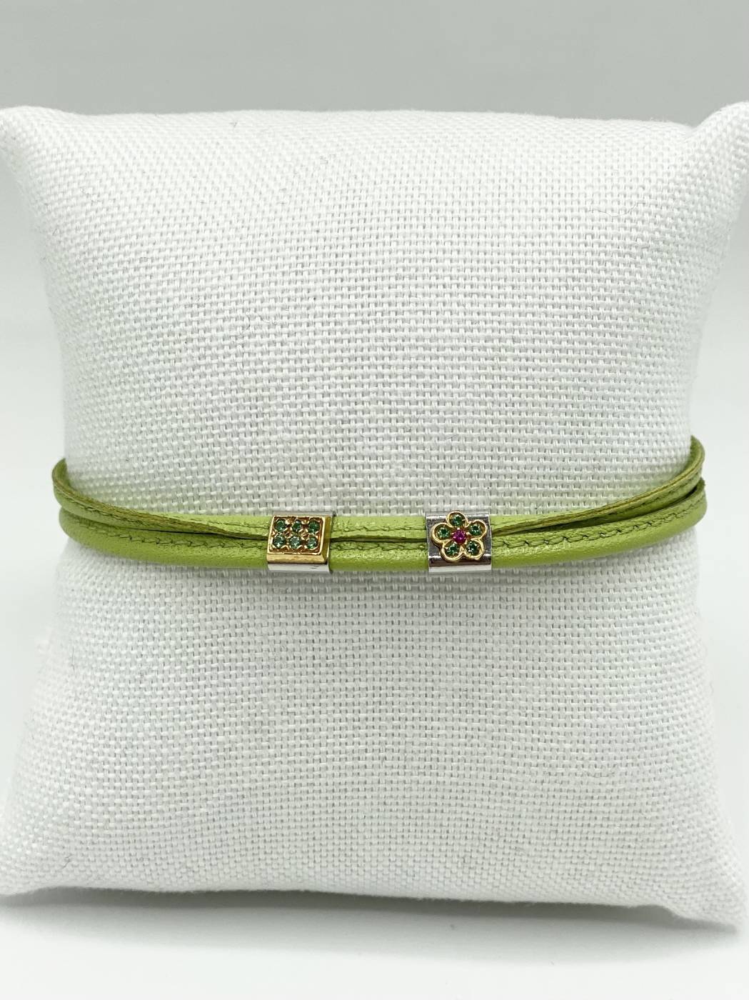 bracciale cordino verde e zirconi colorati