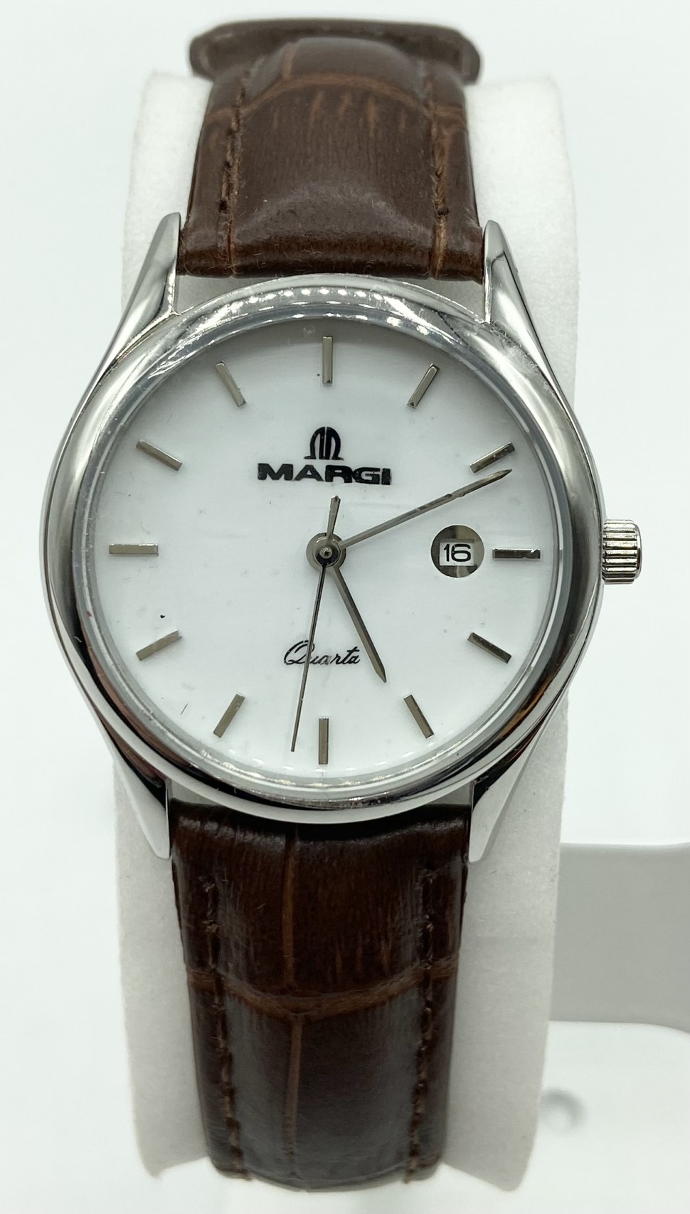 Orologio donna Margi con cinturino in pelle e cassa in acciaio. Movimento al quarzo.