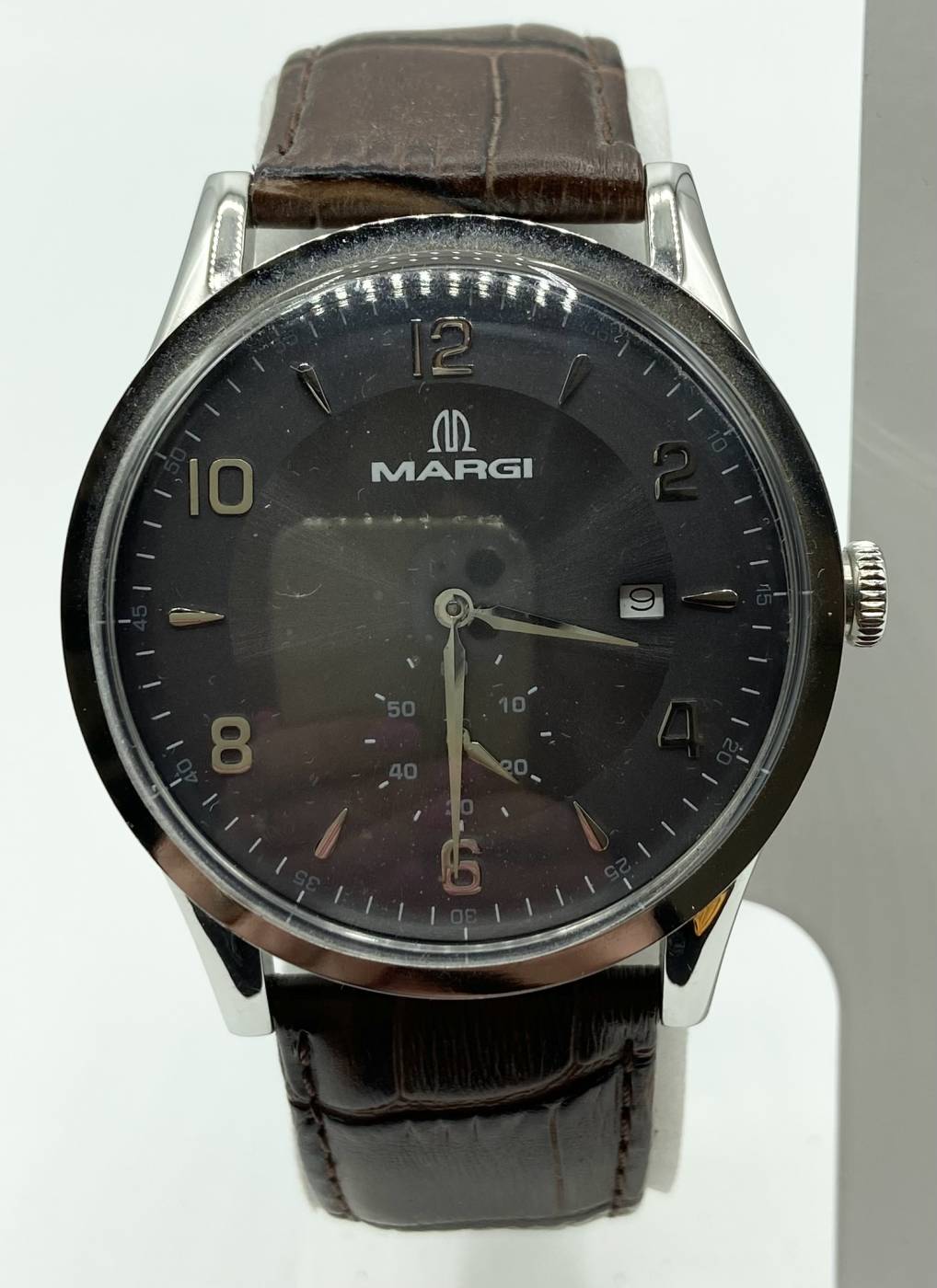 Orologio uomo Margi con cinturino in pelle e cassa in acciaio. Movimento al quarzo.