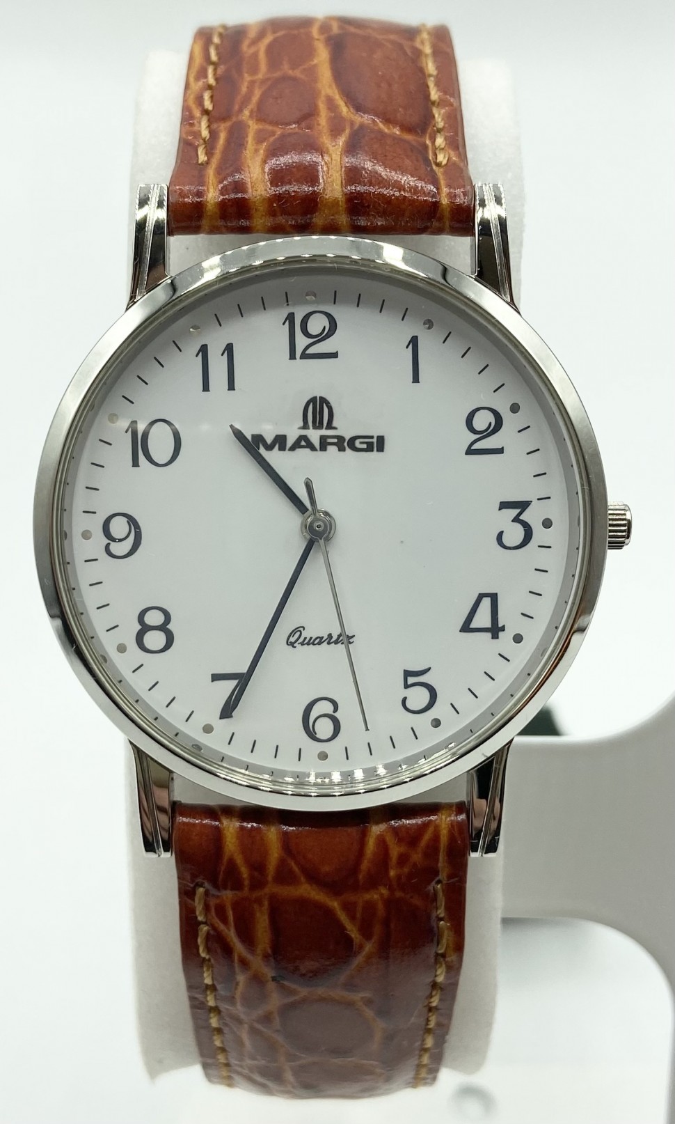 Orologio donna Margi con cinturino in pelle e cassa in acciaio. Movimento al quarzo.