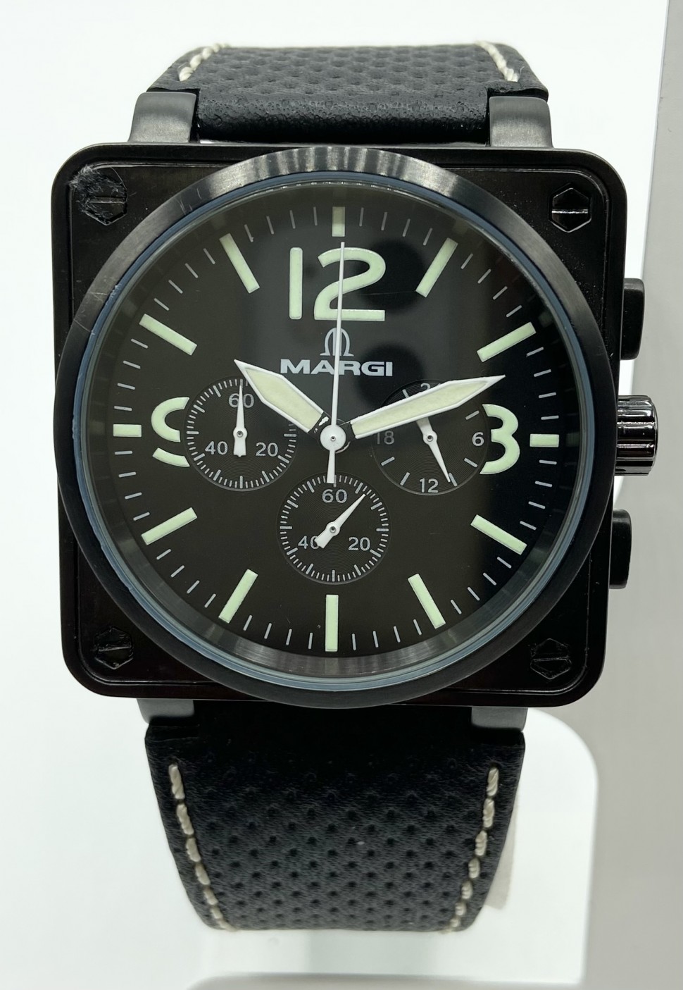 Orologio uomo Margi con cinturino in pelle e quadrante in acciaio. Movimento al quarzo.