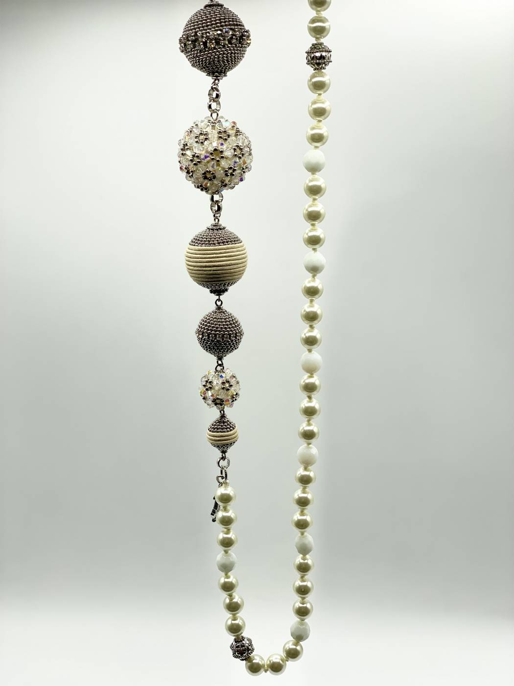 Collana lunga donna Dolman sfere argentate e perle sintetiche