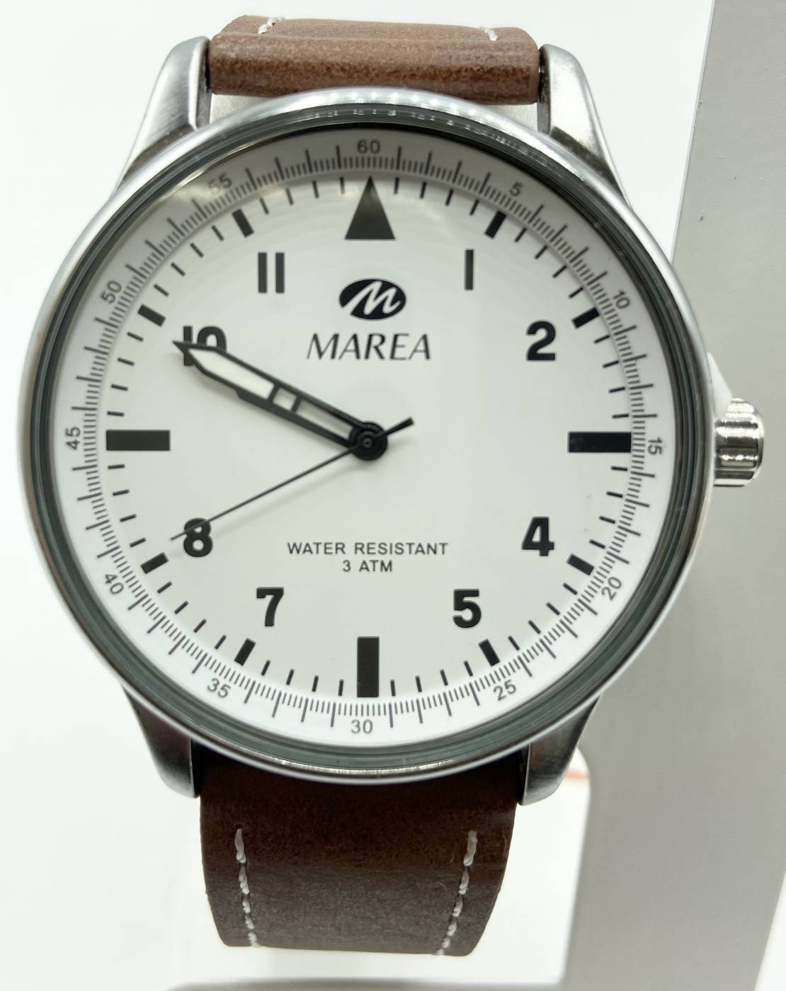 Orologio uomo Marea con cinturino in pelle e cassa in acciaio. Movimento al quarzo.