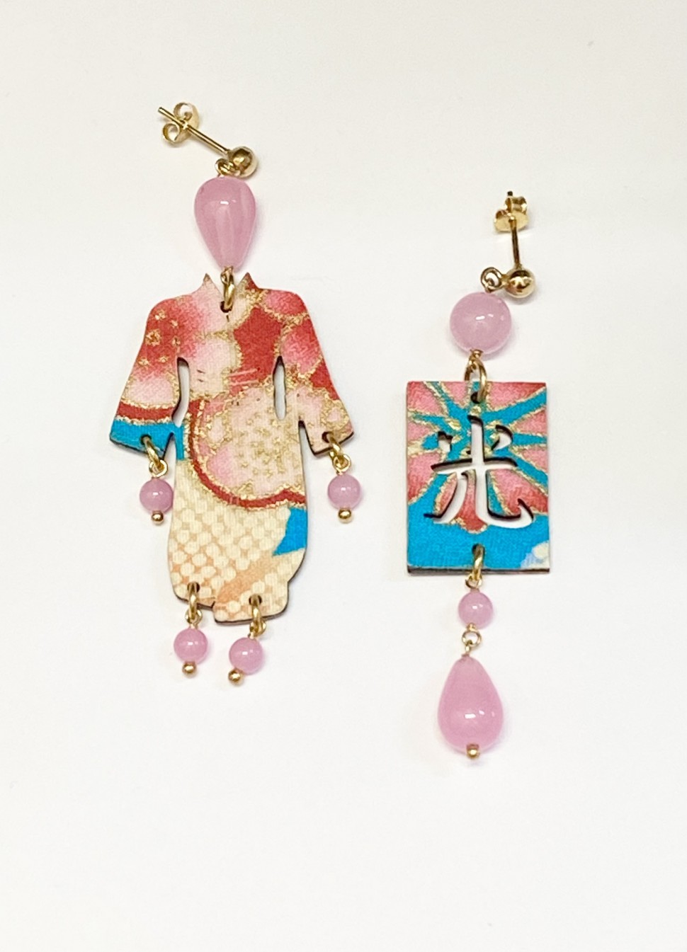 orecchino in seta giapponese con pietre in quarzo rosa