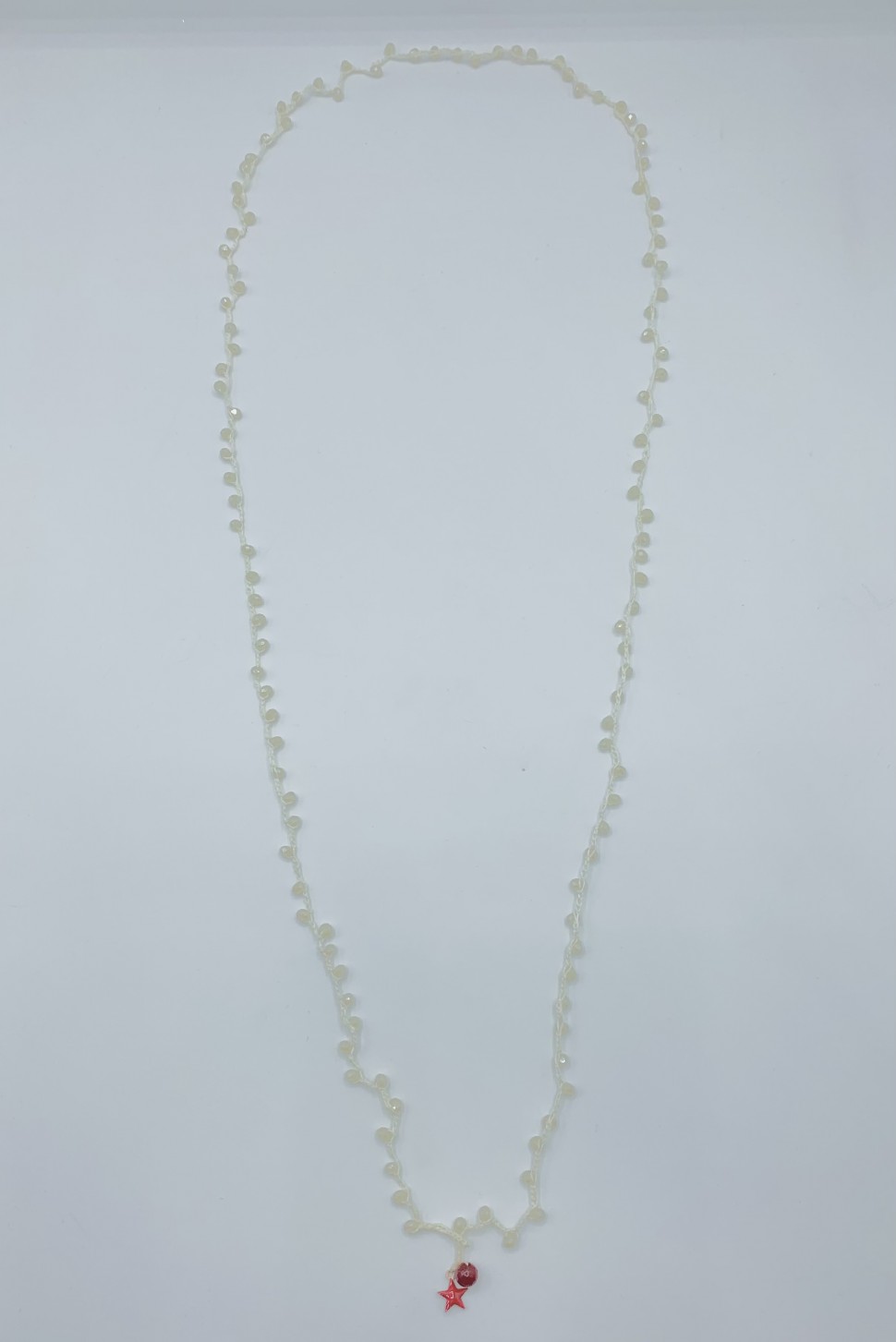 collana lunga uncinetto, con perline bianche e pendente stellina smaltata.