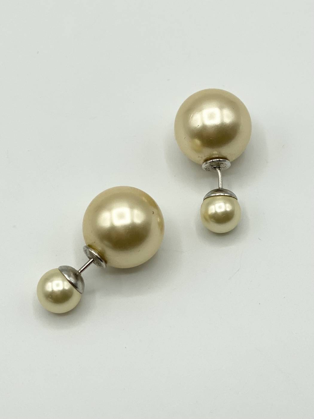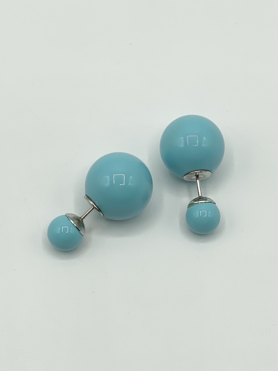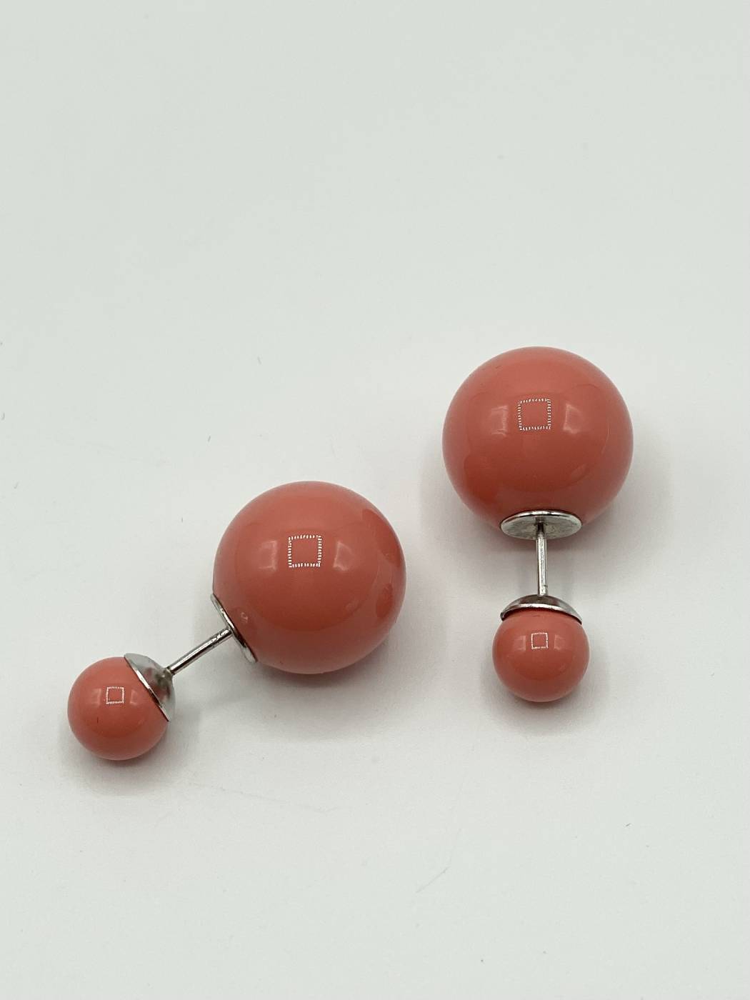 Orecchini bigiotteria ,modello Dior. Gli orecchini si presentano con due sfere una più grande e l'altra più piccola. Disponibili in diversi colori.