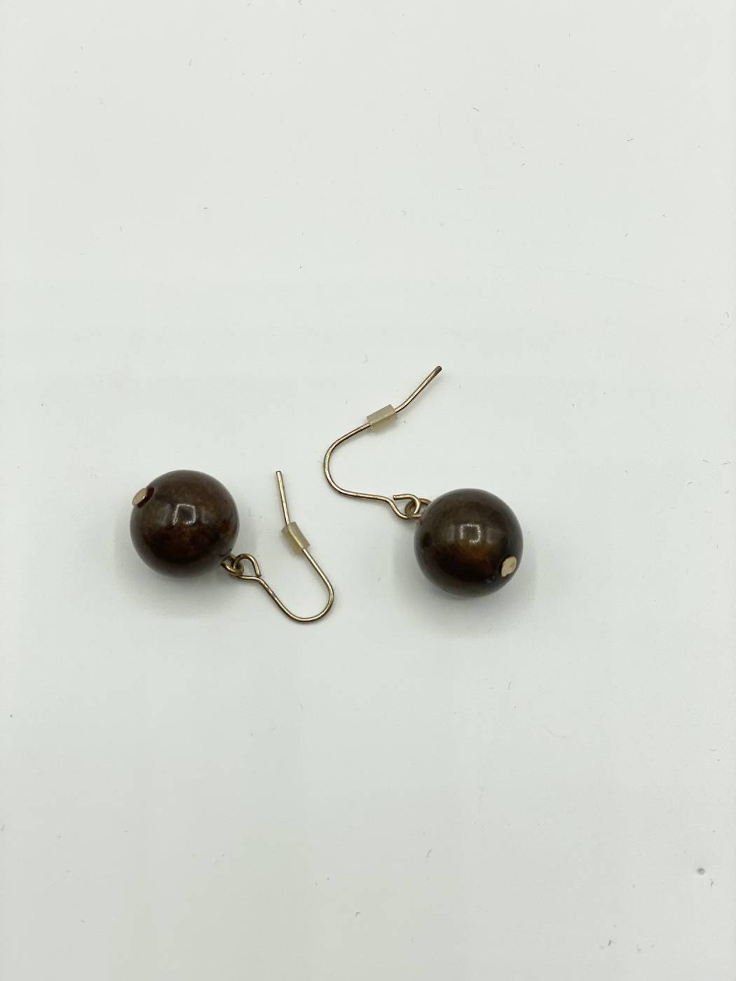 Orecchini donna Matilde Caprìz con sfera marrone pendente.