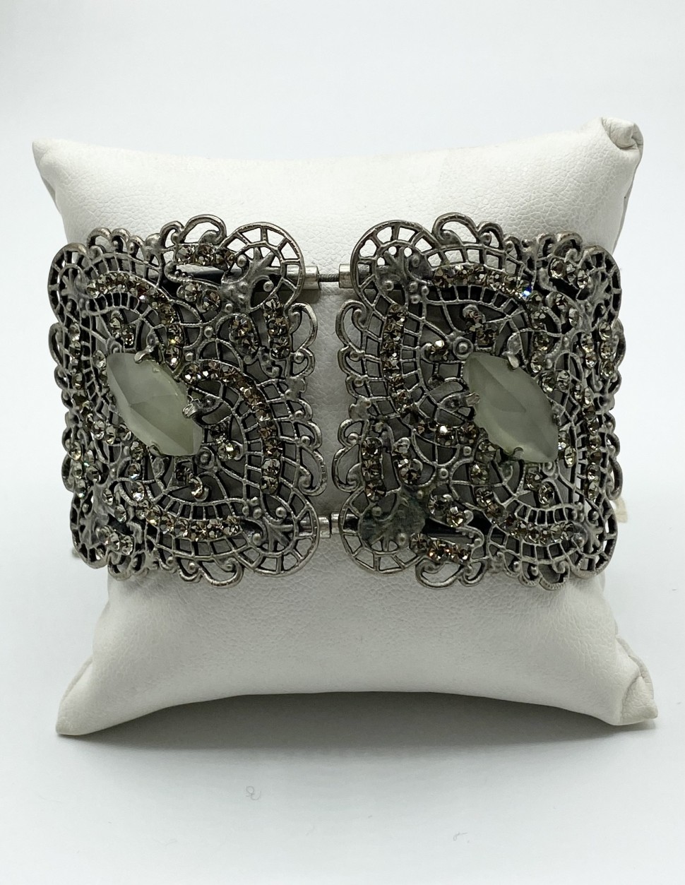 Bracciale donna La Griffe fatto a mano in metallo. Il bracciale elastico si compone di magli rigide con pietre grigie.