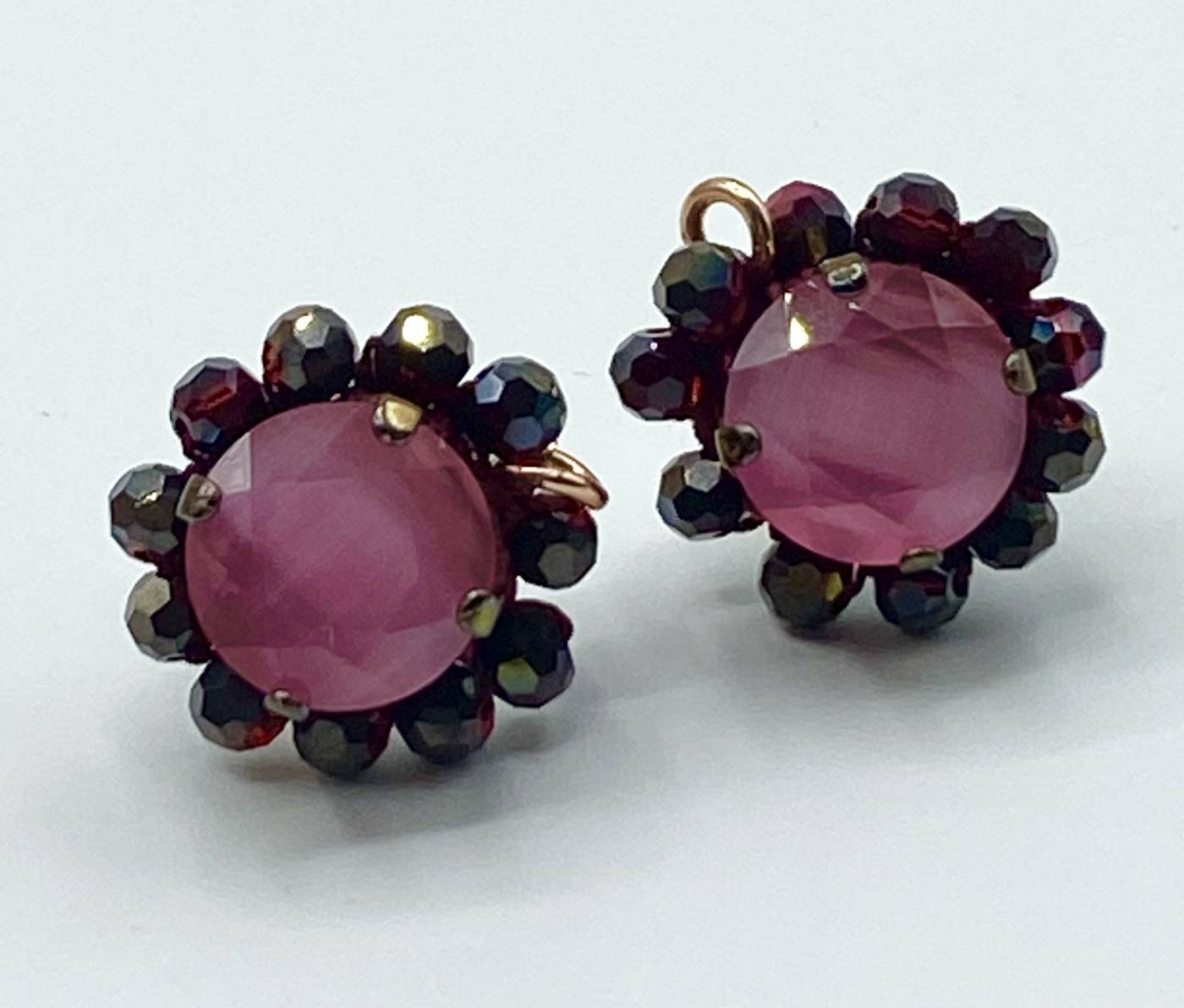 Orecchini donna Not For All con pietre sintetiche incastonate, castoni in metallo bagnati in oro rosa e gancio in argento 925 sempre bagnato in oro rosa. Fatti a mano a Firenze.