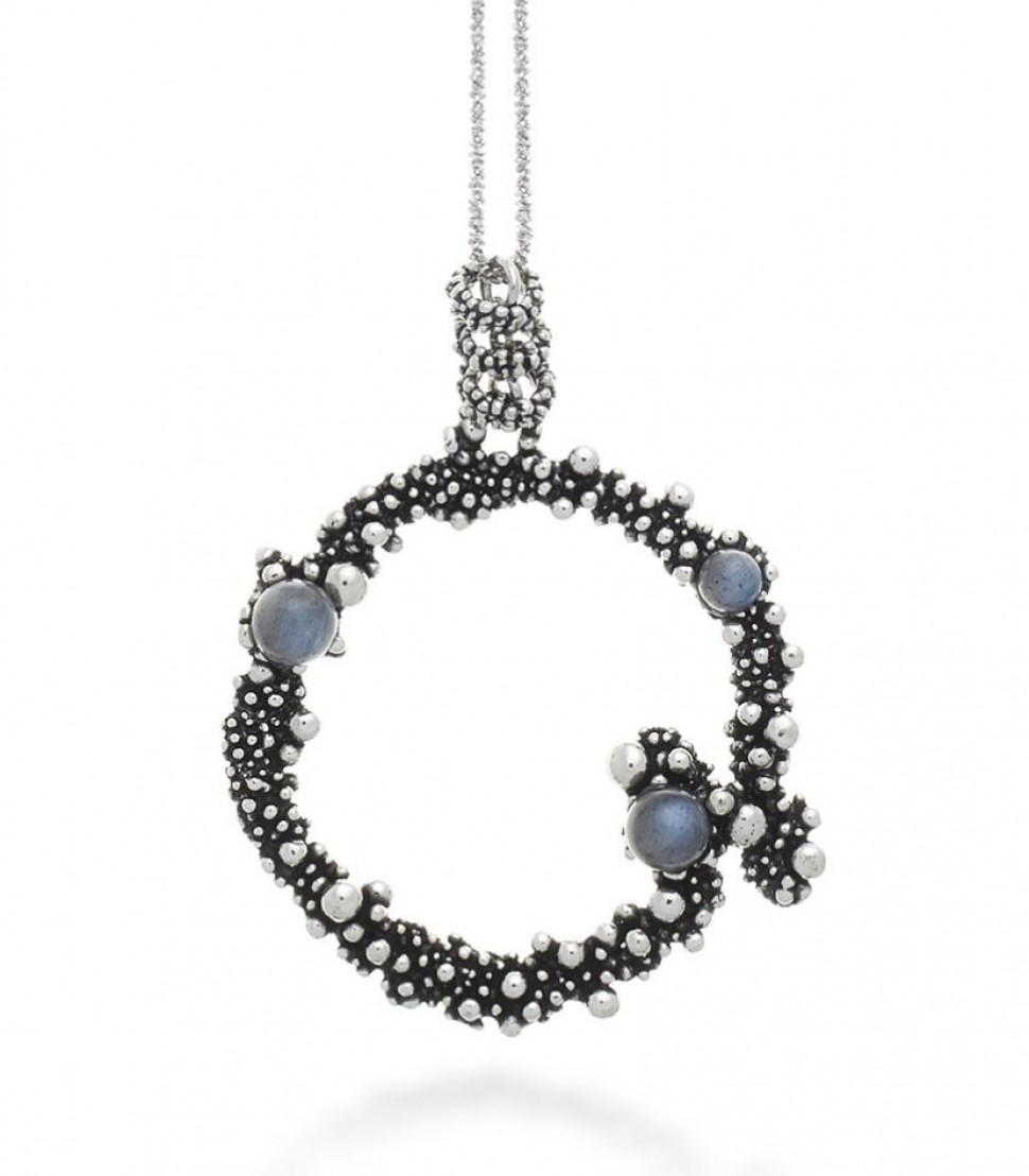 Argento 925 e labradorite Lunghezza catena 80 cm Lunghezza pendente 5,5 cm Chiusura con moschettone Fatto a mano in Italia SKU:09961