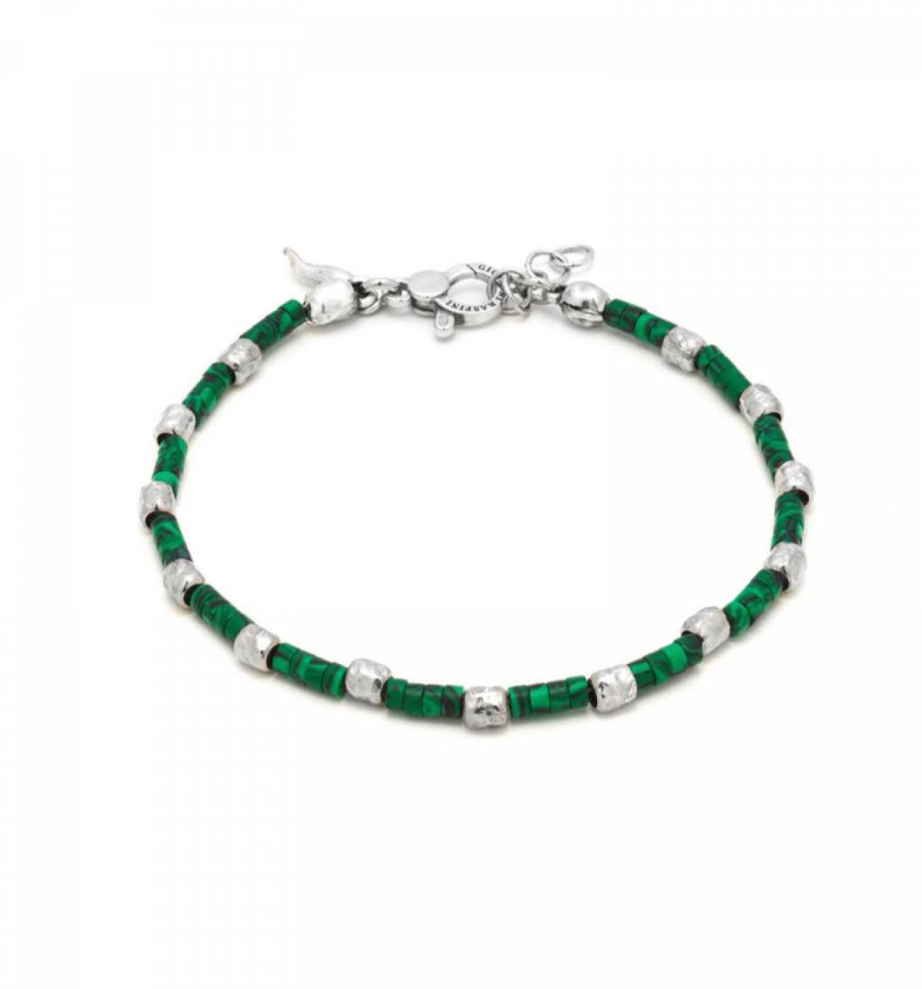 Argento 925 e malachite Lunghezza 22 cm (L) Chiusura con moschettone con maglie di regolazione Fatto a mano in Italia SKU:11360