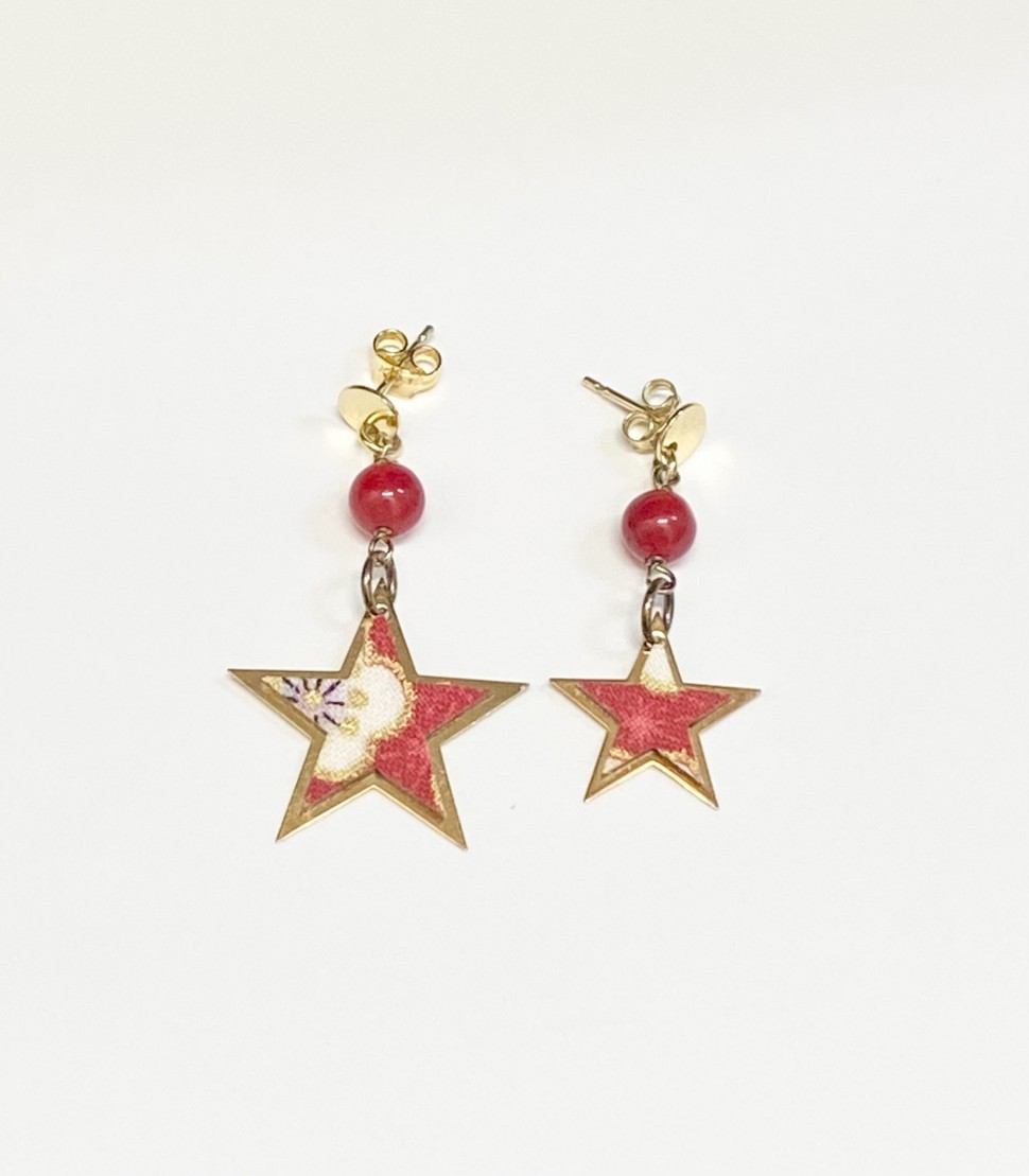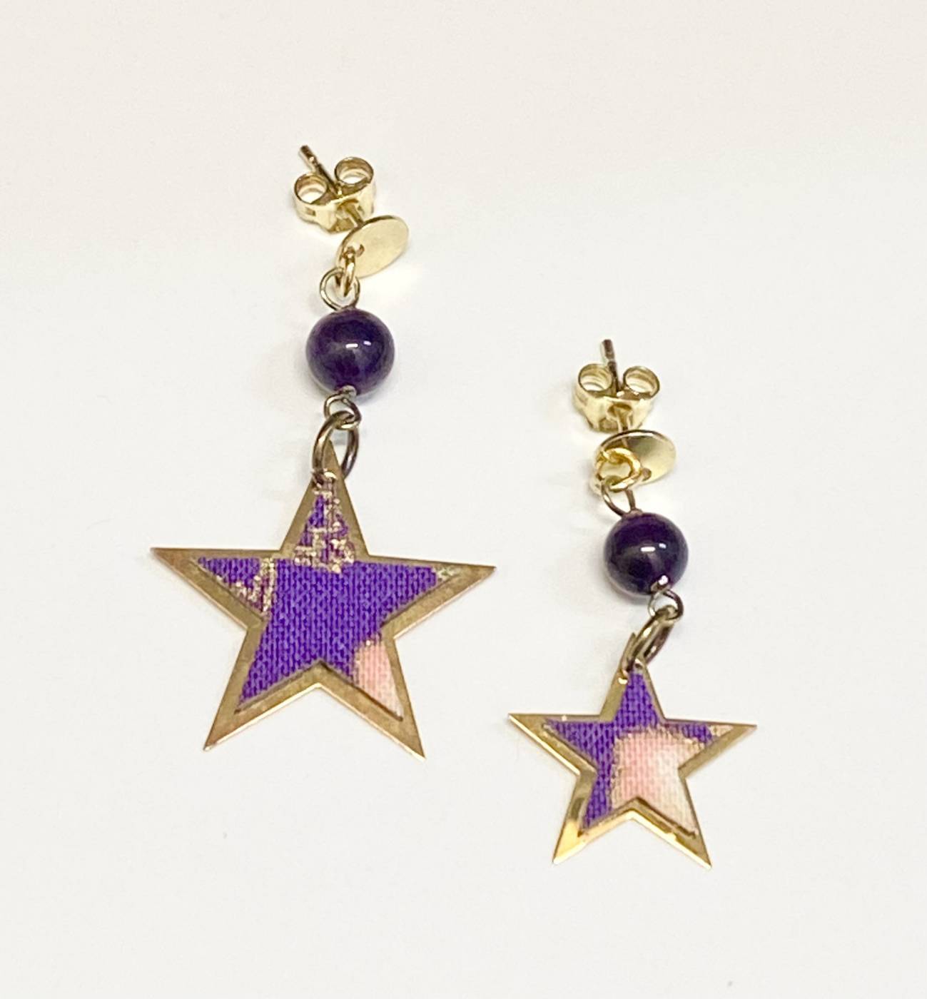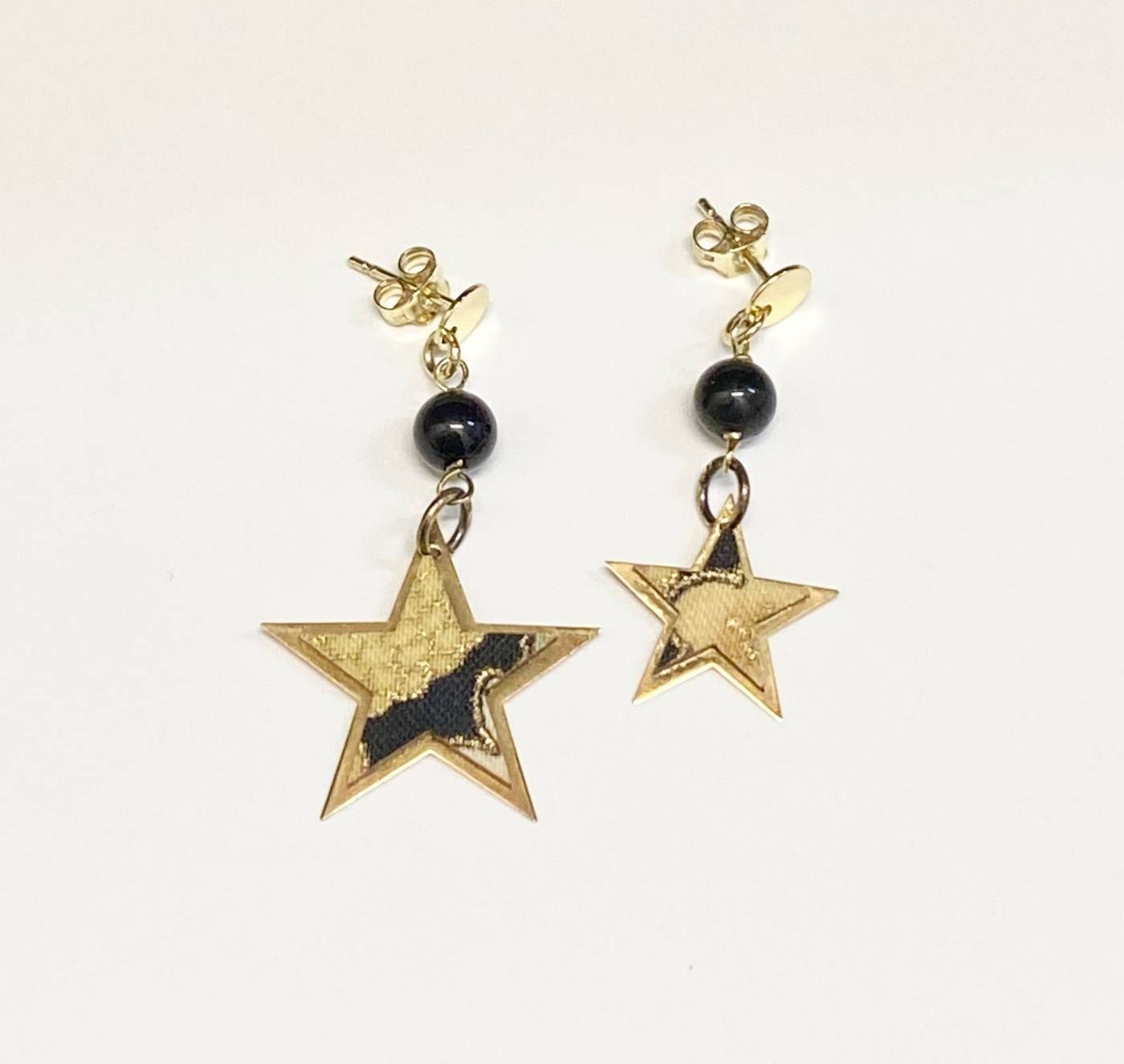 Orecchini donna Lebole in argento galvanizzato oro, pietre naturali e sete giapponesi stese su una leggerissima anima di legno.