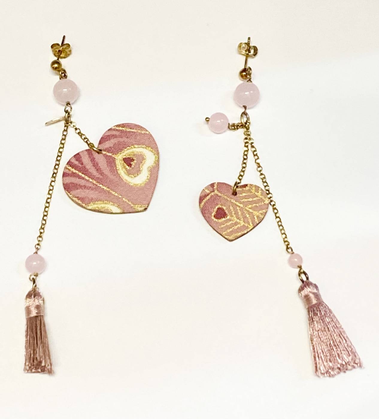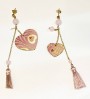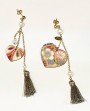 Orecchini donna Lebole in ottone galvanizzato oro, pietre naturali e sete di antichi Kimono giapponesi stese su una leggerissima anima di legno. Arricchiti con nappina finale.