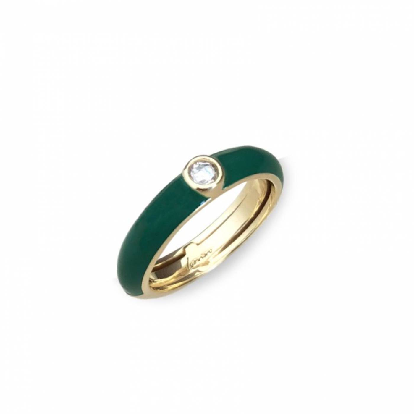 Anello donna Labrioro in argento 925, disponibile in diverse galvaniche, con smalto e zircone centrale. Tutti gli anelli presentano una molla interna per poter essere regolati. La taglia S corrisponde alle misure 11/12/13/14.
