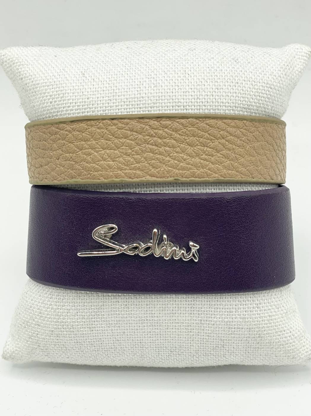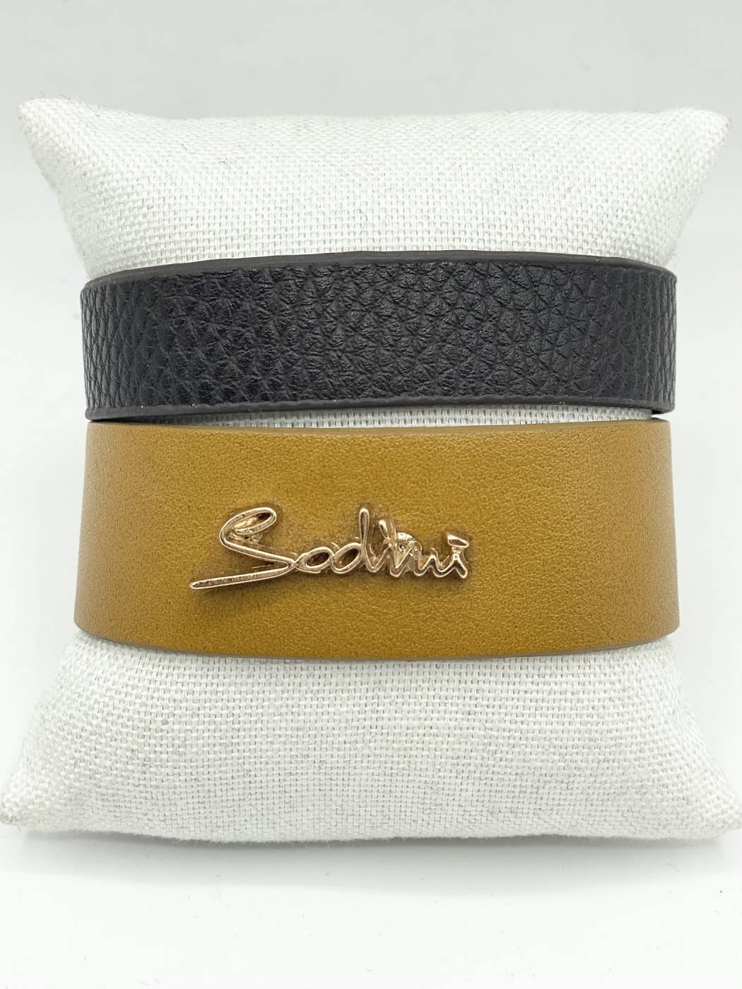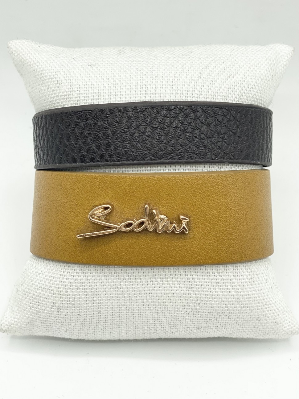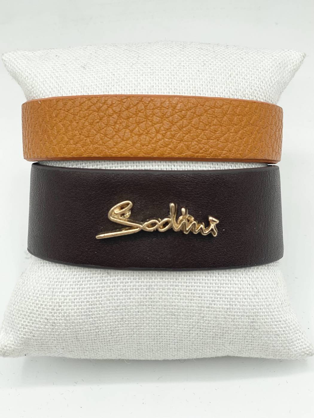 Bracciale donna, lungo 20,5 cm, Sodini. In ecopelle con dettagli in metallo dorato.
