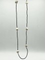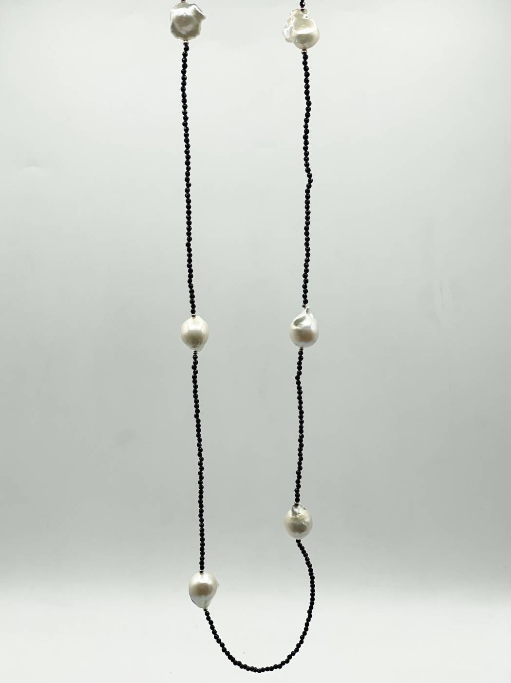 Collana donna, lunga 100 cm, Kikilia. In argento 925, onice e perle fresh water.
