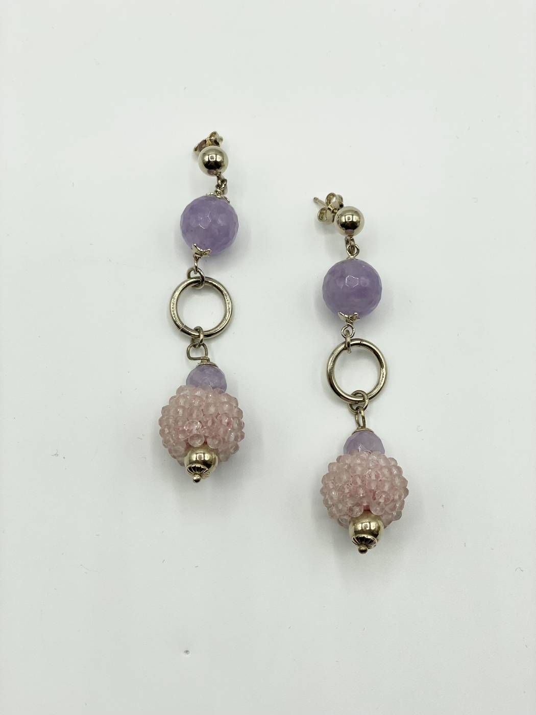 Orecchini donna Santo Spirito in argento 925 bagnato oro con ametista e quarzo rosa.
