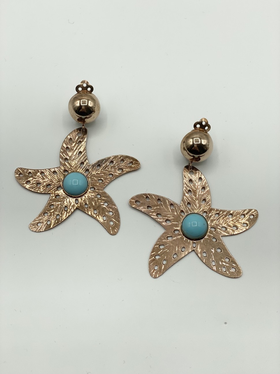 Orecchini donna con clip Santo Spirito in argento 925 bagnato oro rosa e pasta di turchese.