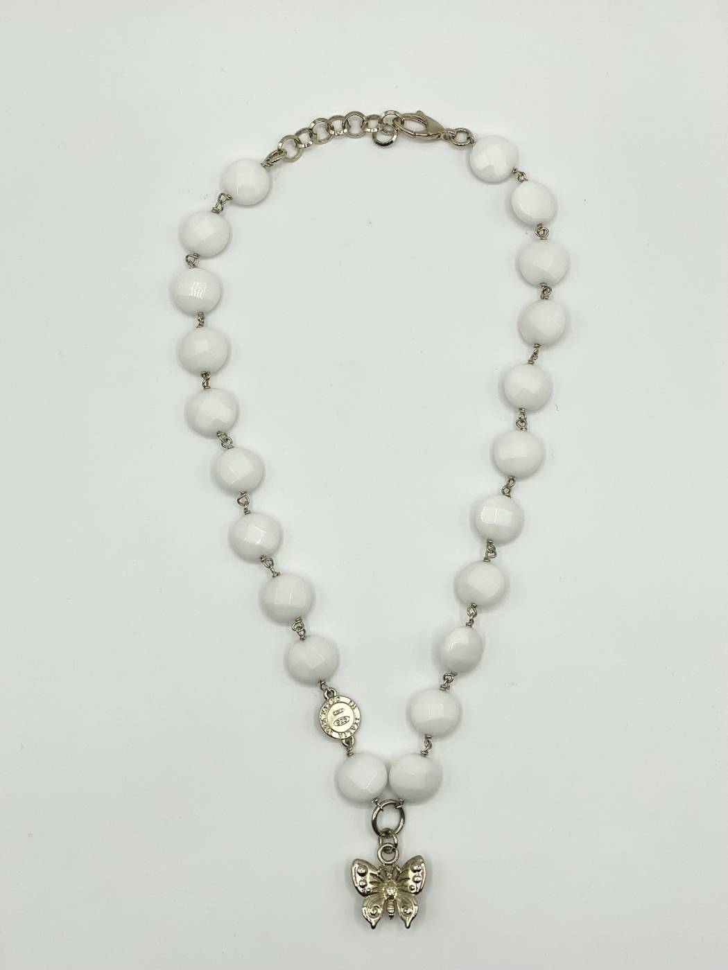 Collana donna Santo Spirito farfalla con agata bianca