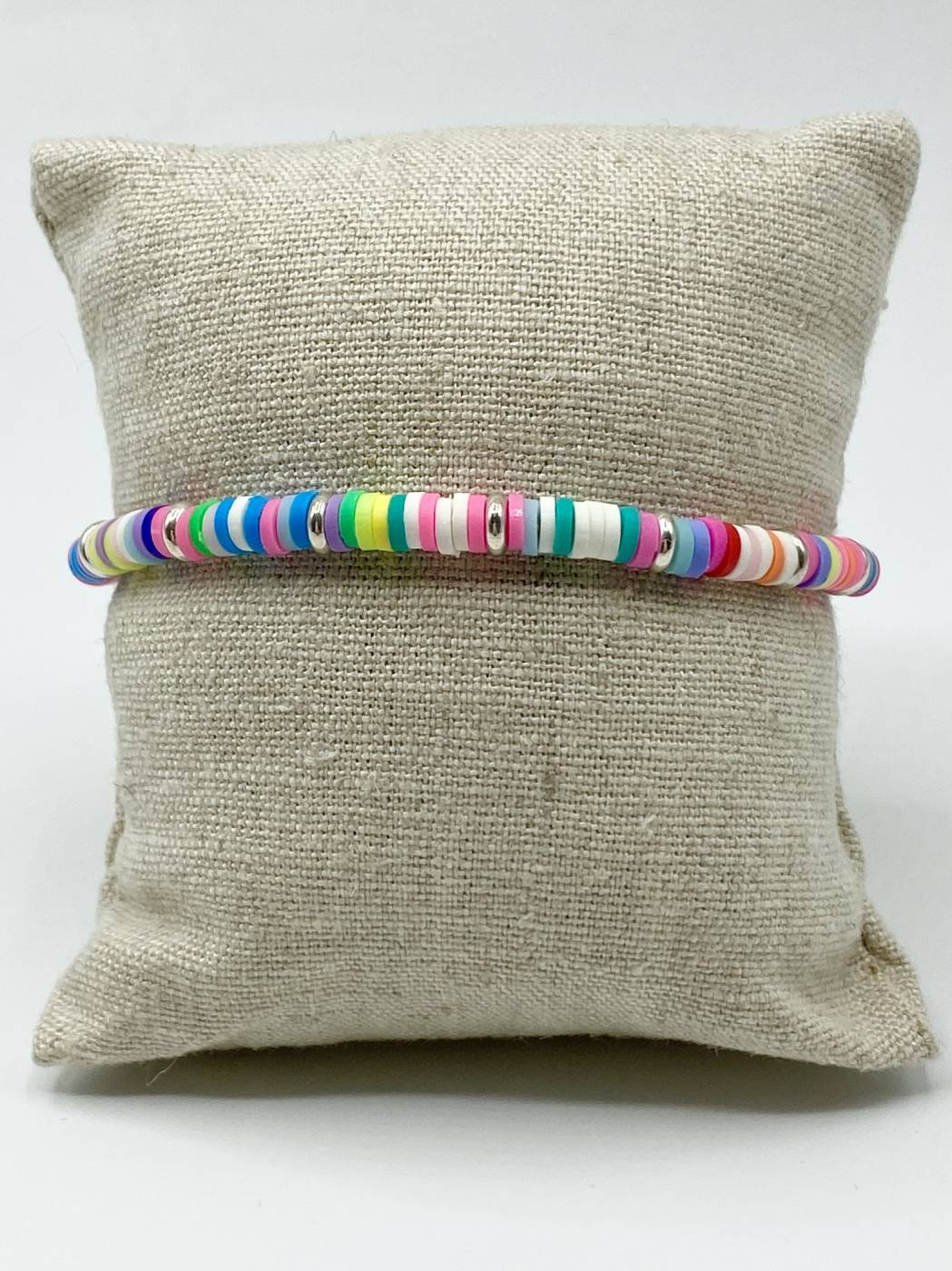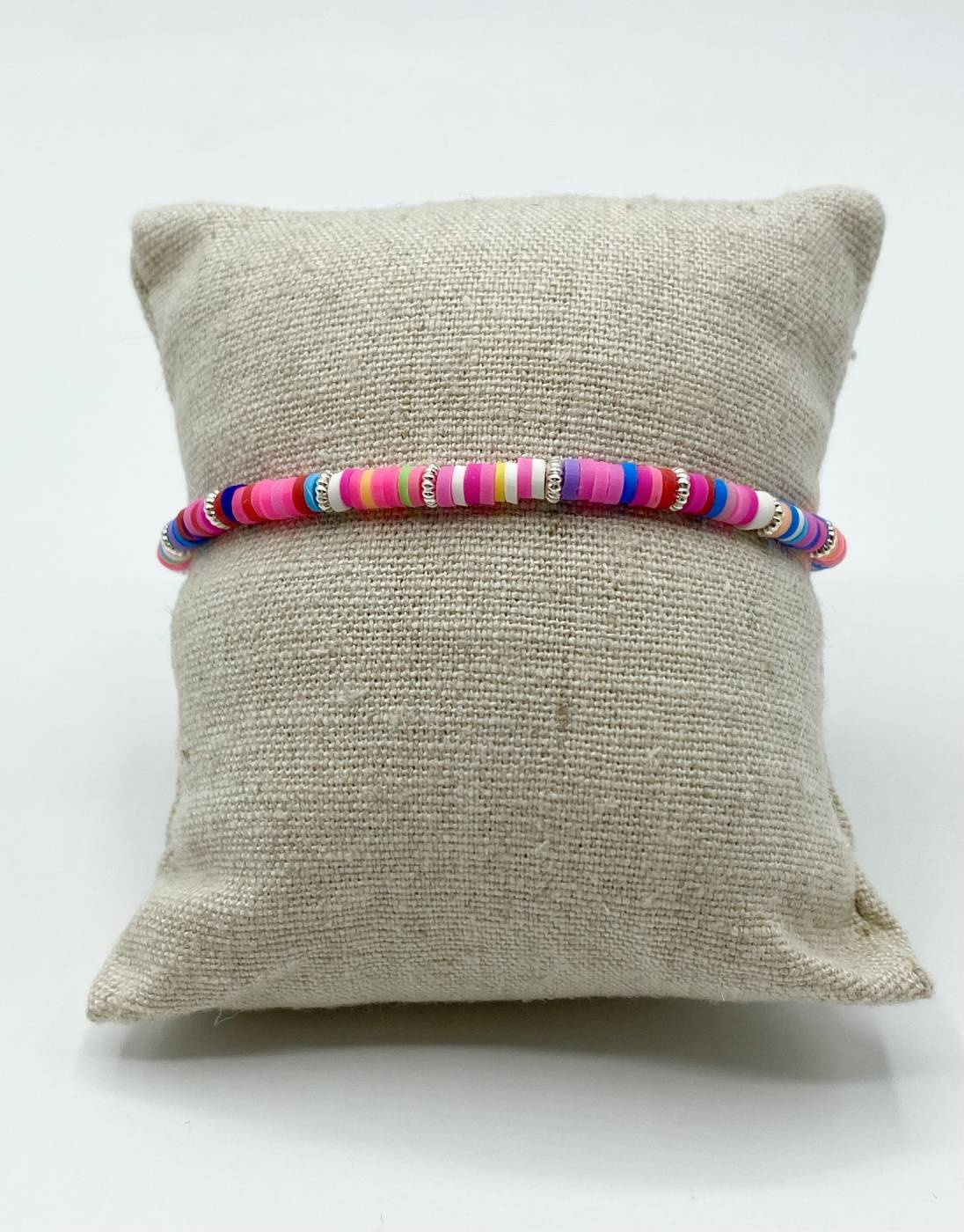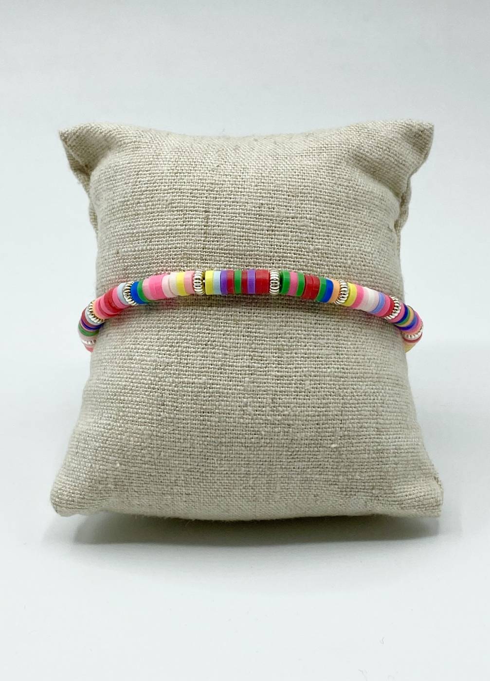 Bracciale donna, lungo 20,5 cm, Fatto a mano in argento 925 e rondelle di gomma colorata.