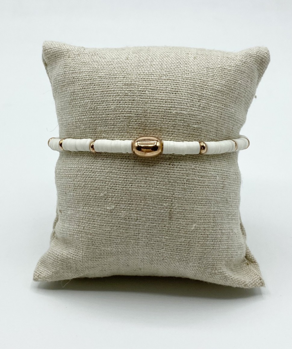 Bracciale donna, lungo 20 cm, Fatto a mano in argento 925 bagnato oro rosa e rondelle di gomma bianca.