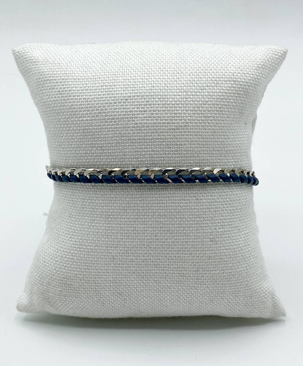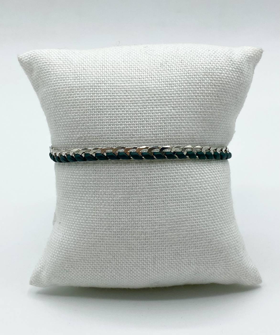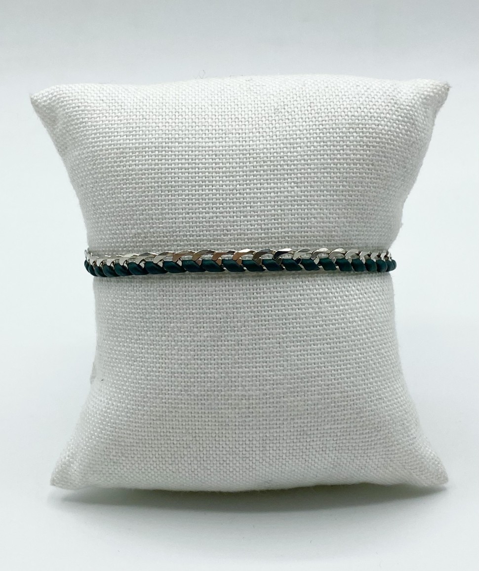 Bracciale donna Fatto a mano con intreccio di pelle e argento