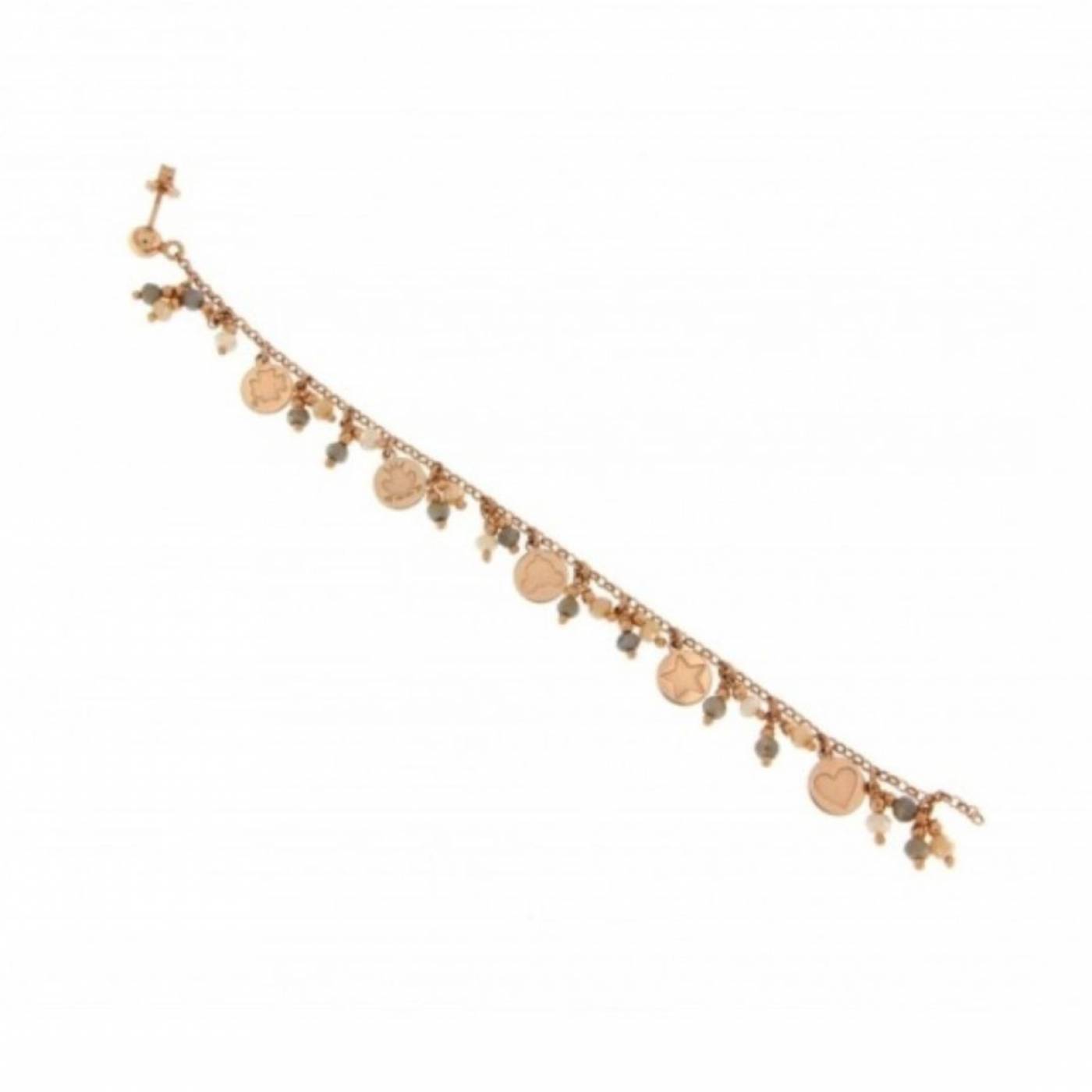 Mono orecchino donna Rue Des Mille in argento 925 bagnato oro rosa 18 kt e pietre colorate.