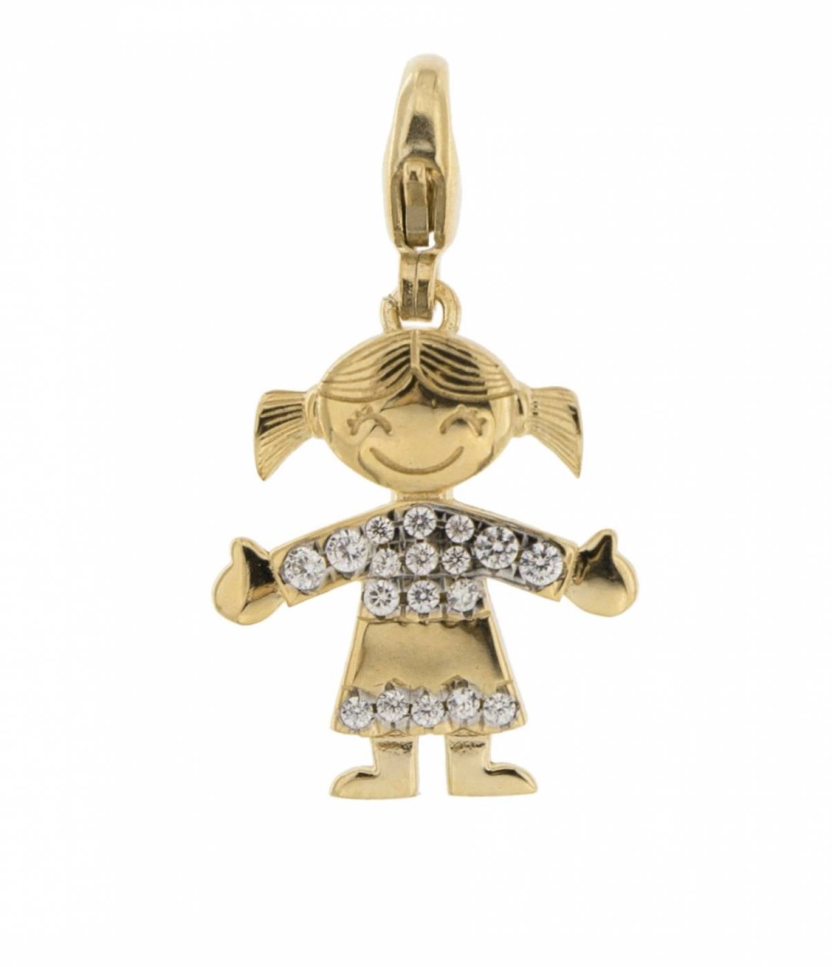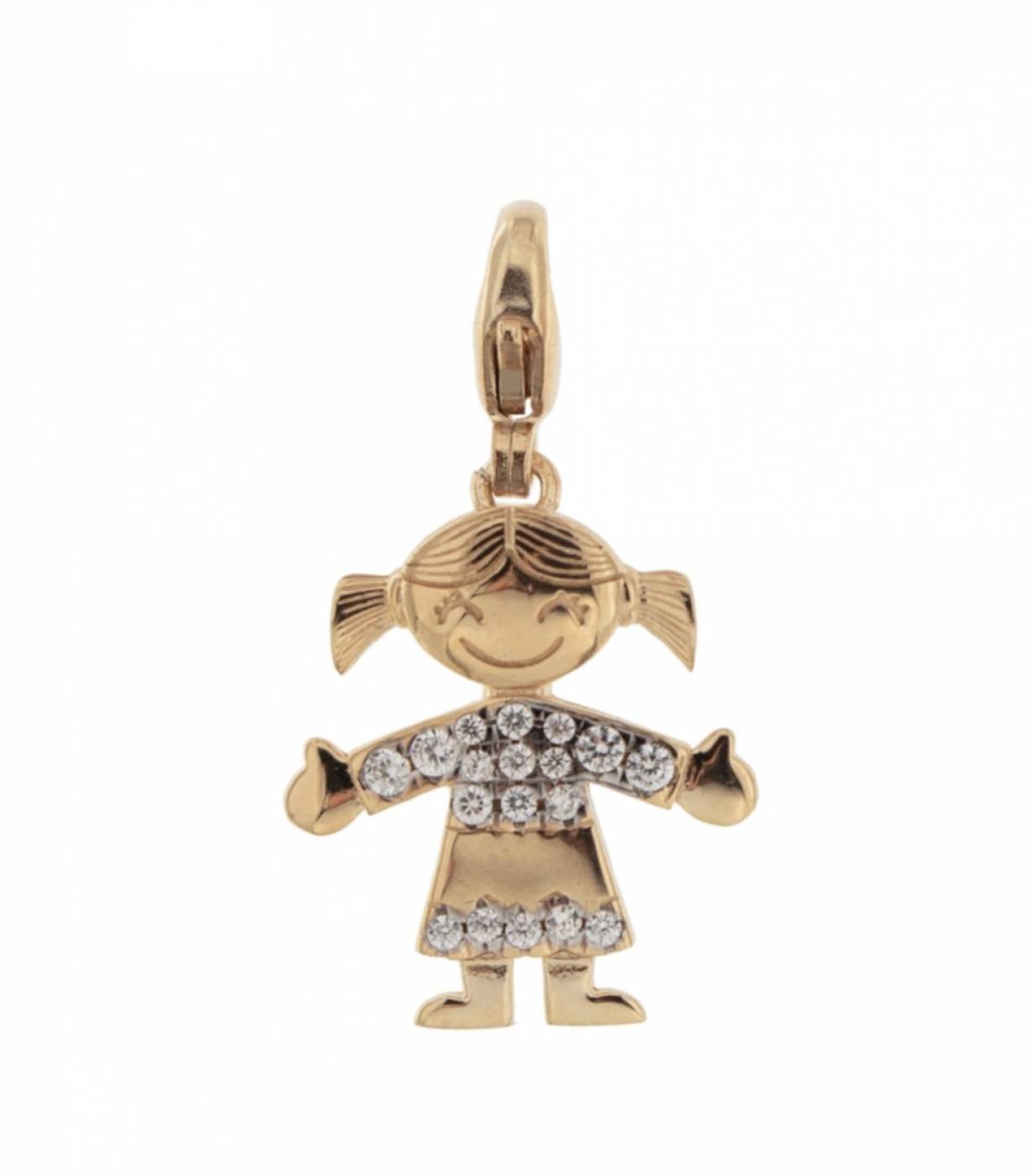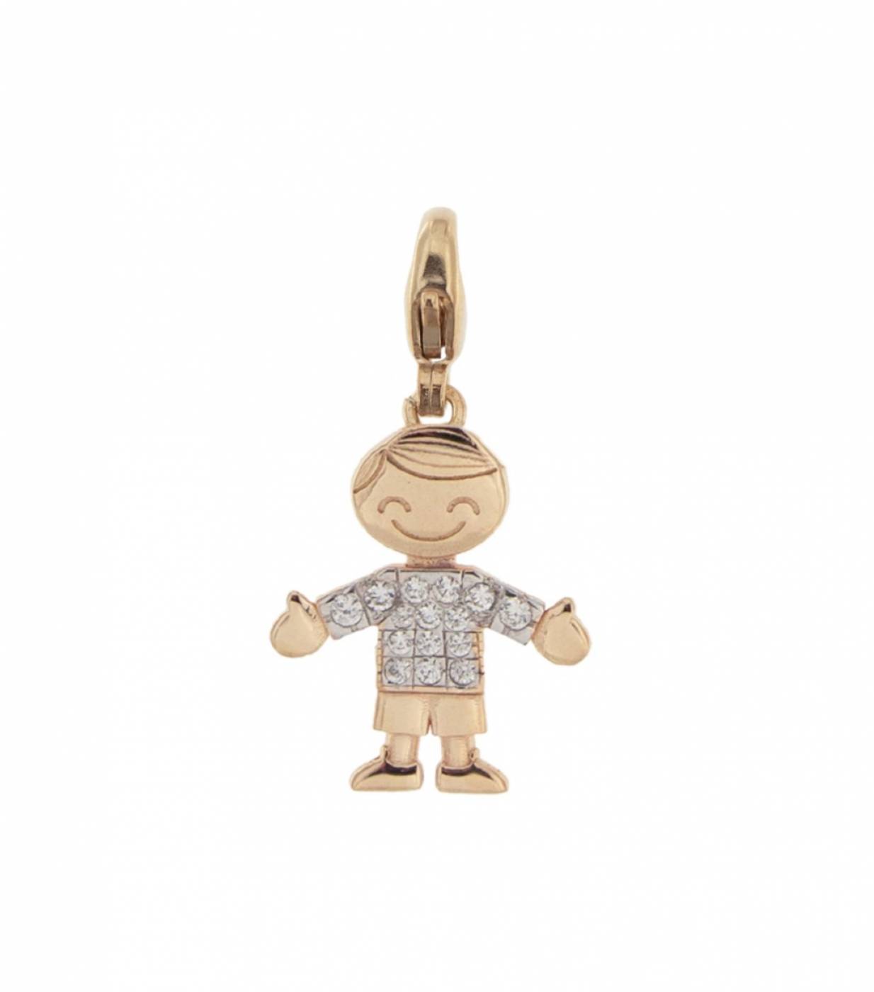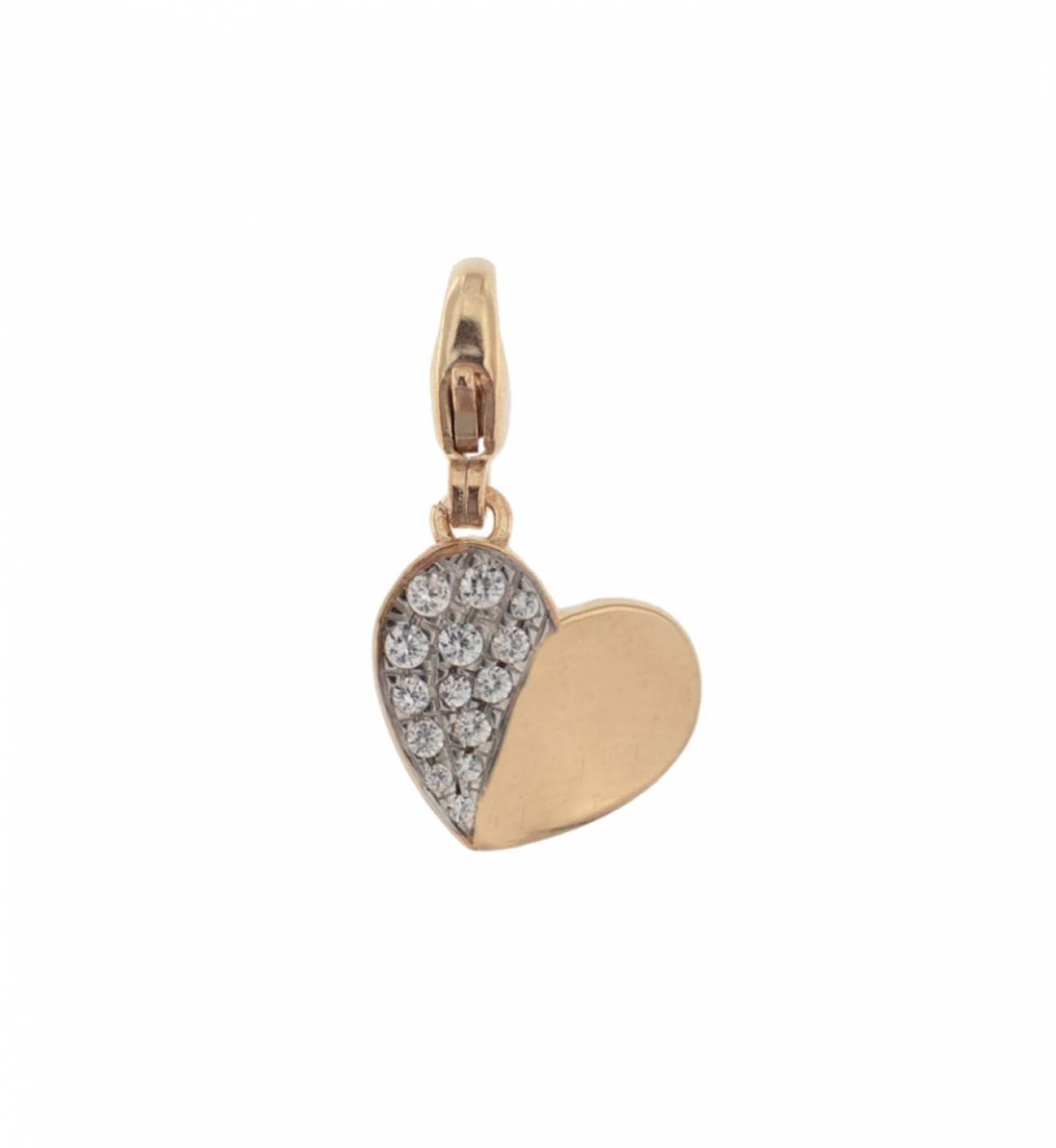 Pendente Rue Des Mille con moschettone in argento 925 bagnato oro rosa 18 kt e zirconi.