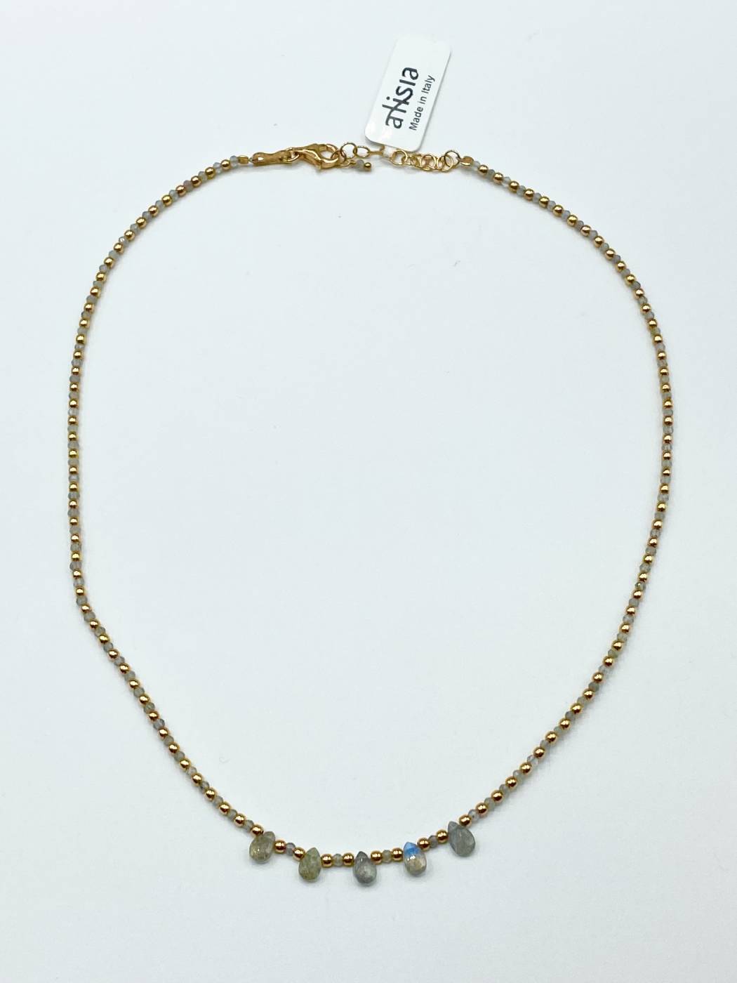 Collana donna, lunga 41 cm, Alisia. In argento 925 rosato e labradorite.