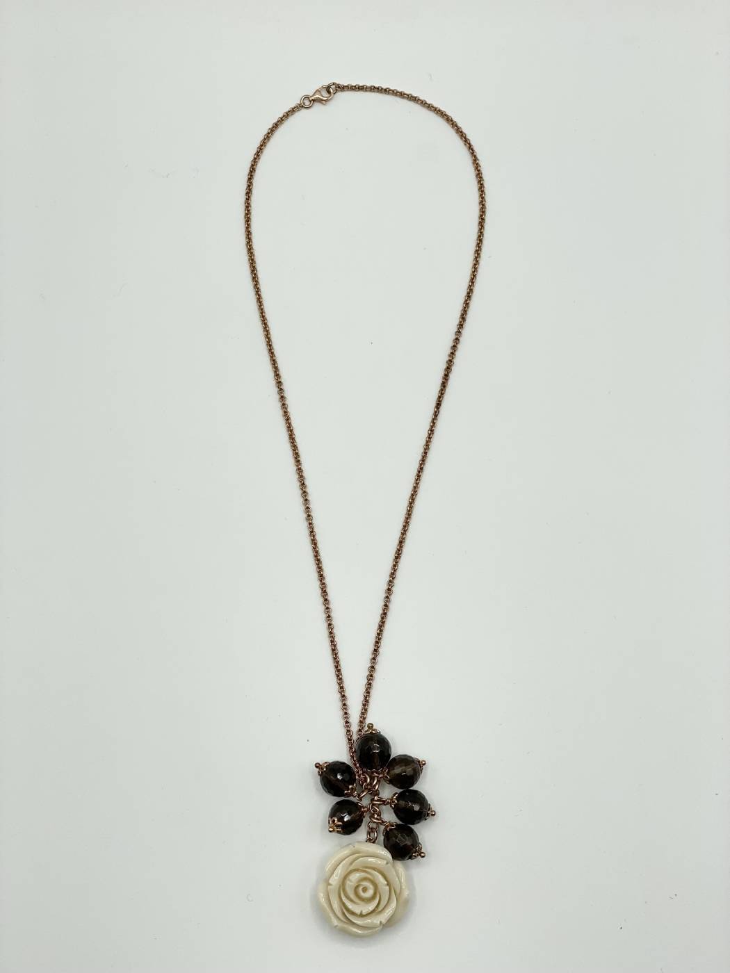 Collana donna Fatta a mano con rosa bianca e quarzo fumè