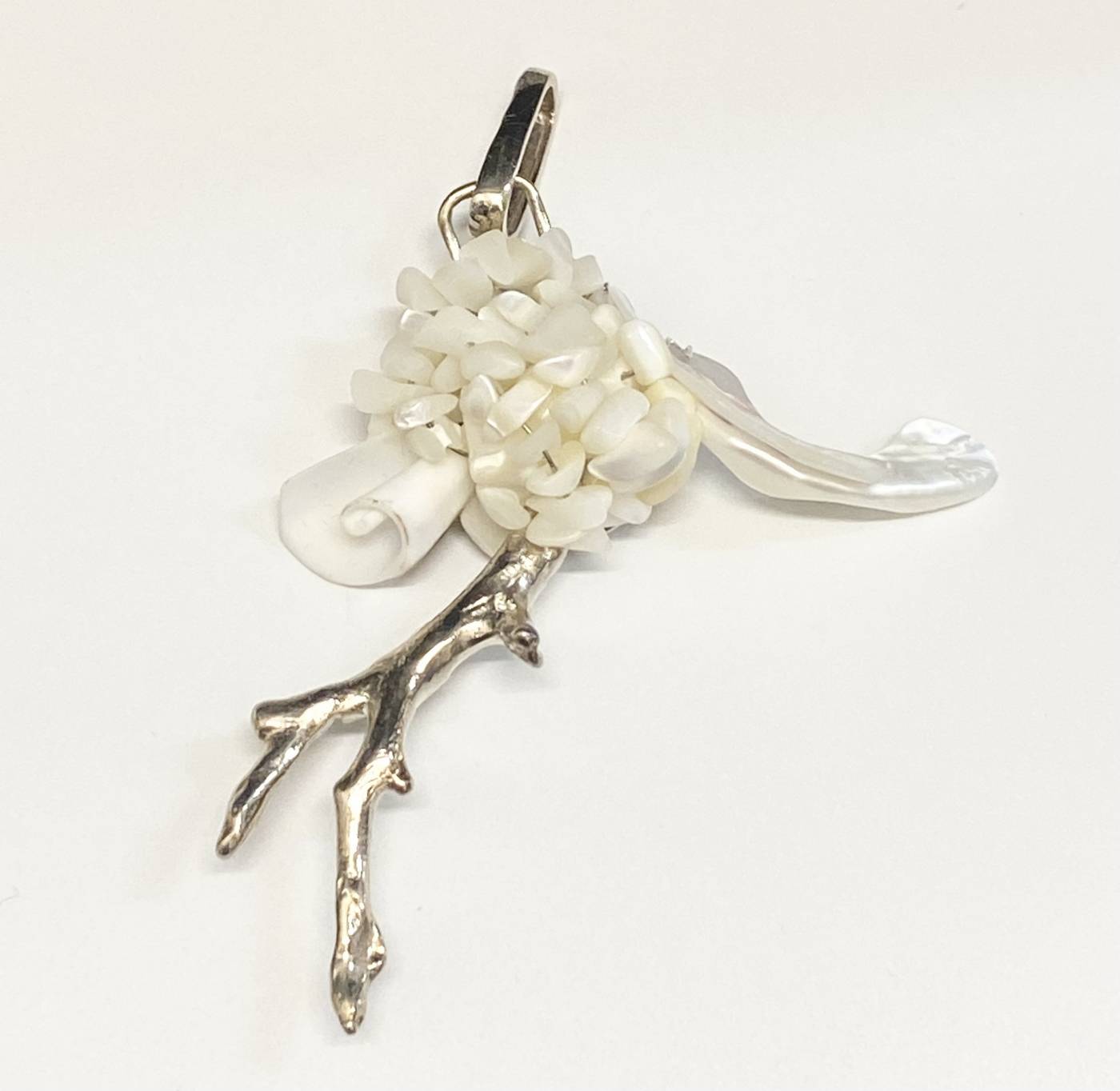 Pendente donna Omnia fatto interamente a mano in argento 925 e madreperla.