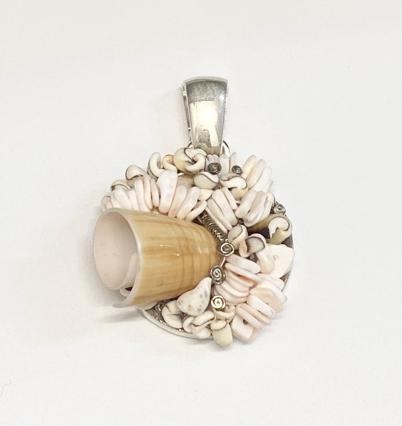 Pendente donna Omnia fatto interamente a mano in argento 925 e corallo bianco.