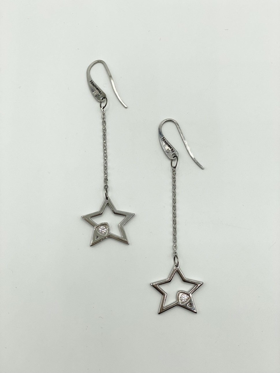 Orecchini donna Nomination, in acciaio inossidabile. E' presente una catena sottile che termina con una stella pendente vuota. Entrambe le stelle hanno uno zircone.