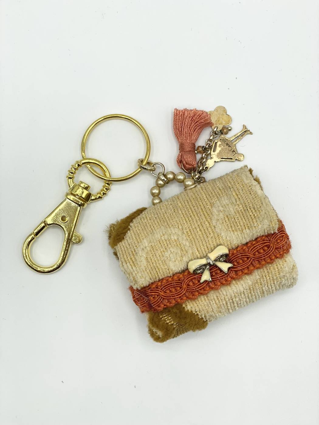 Portachiavi Carose con borsetta e maglia brisè dorata. Disponibile in più varianti di colore.