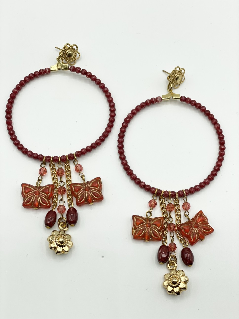 orecchini cerchio perline rosse