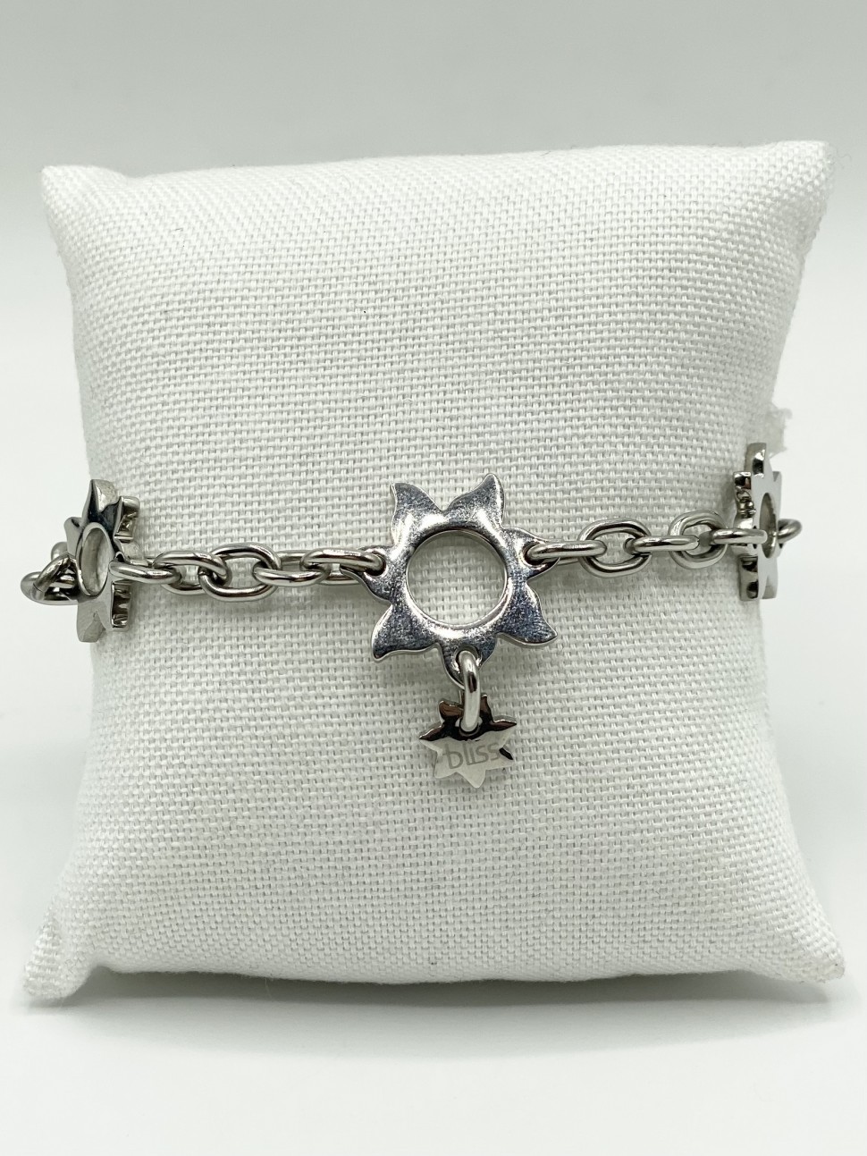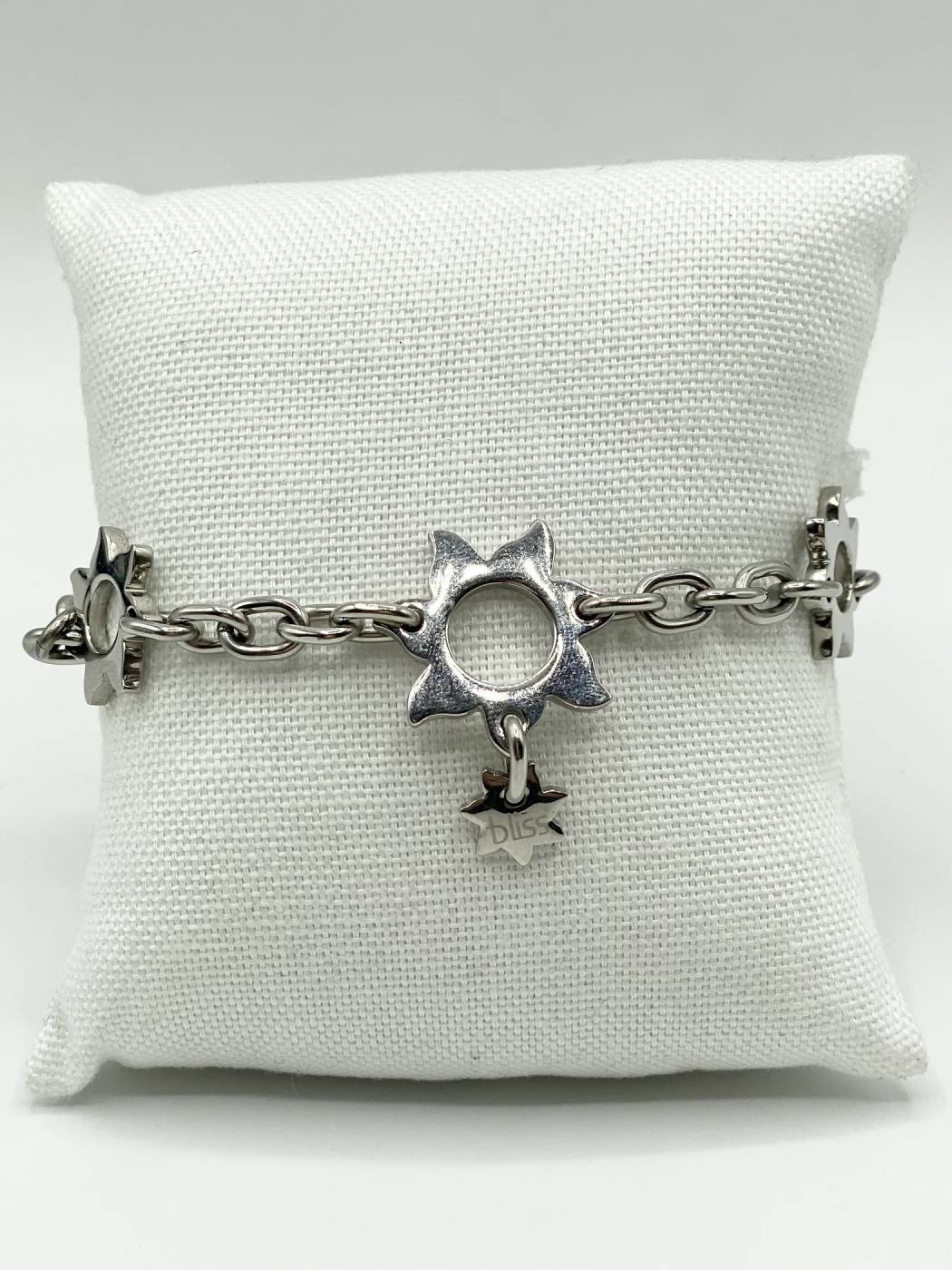 Bracciale donna Bliss, in acciaio inossidabile, con soli distanziati da catena e un sole più piccolo pendente. E' presente un diamante di caratura 0,01.