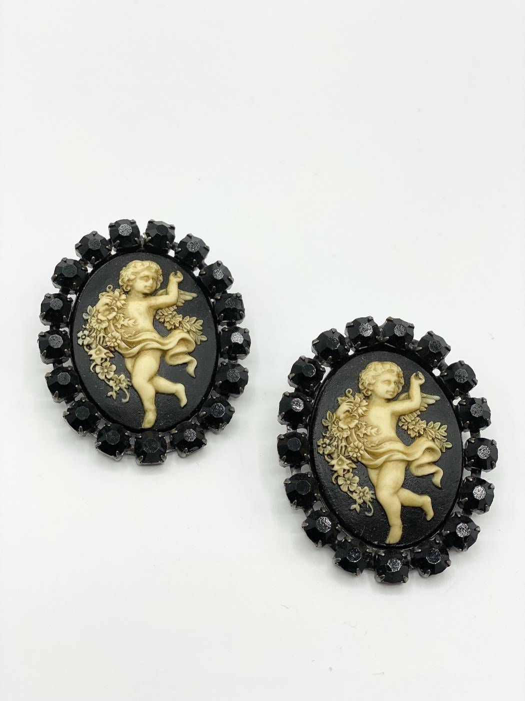 Orecchini cammeo e zirconi neri